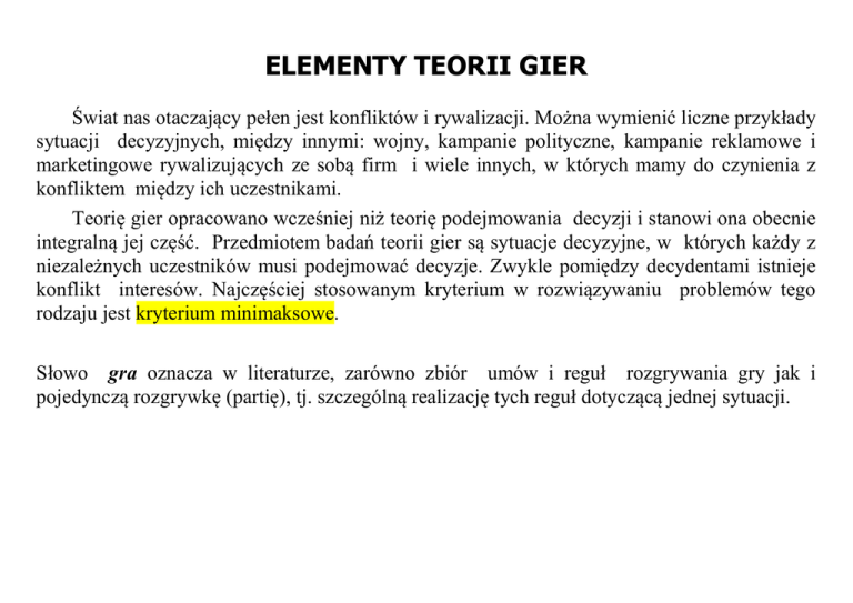ELEMENTY TEORII GIER