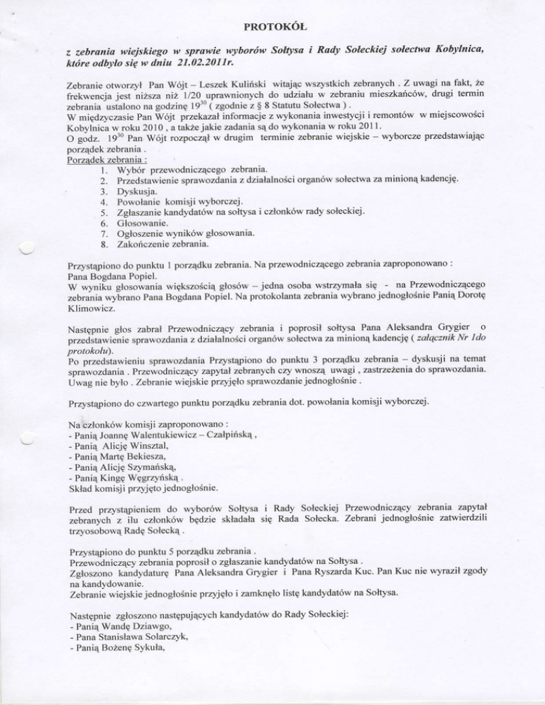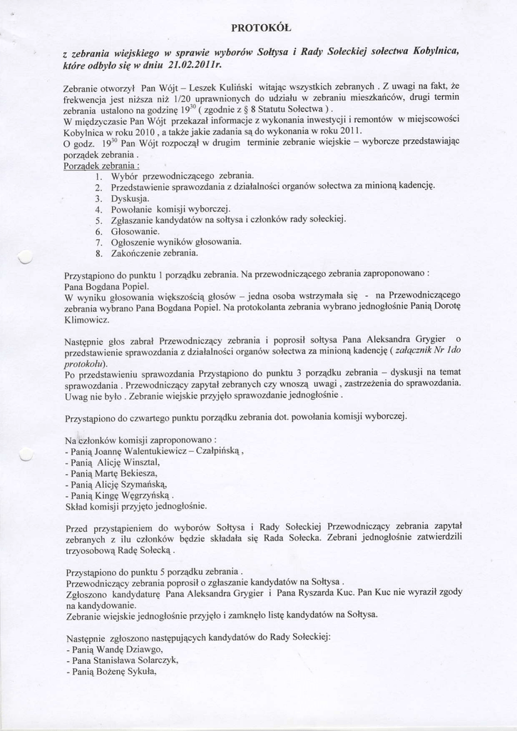 W wyniku tajnego gtosowania na SoltysasolectwaKobylnica $ybrano Pana Alelcandra Grygier ,