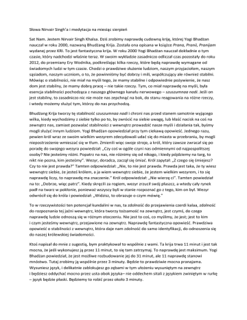 Słowa Nirvair Singh i medytacja sierpień 2013