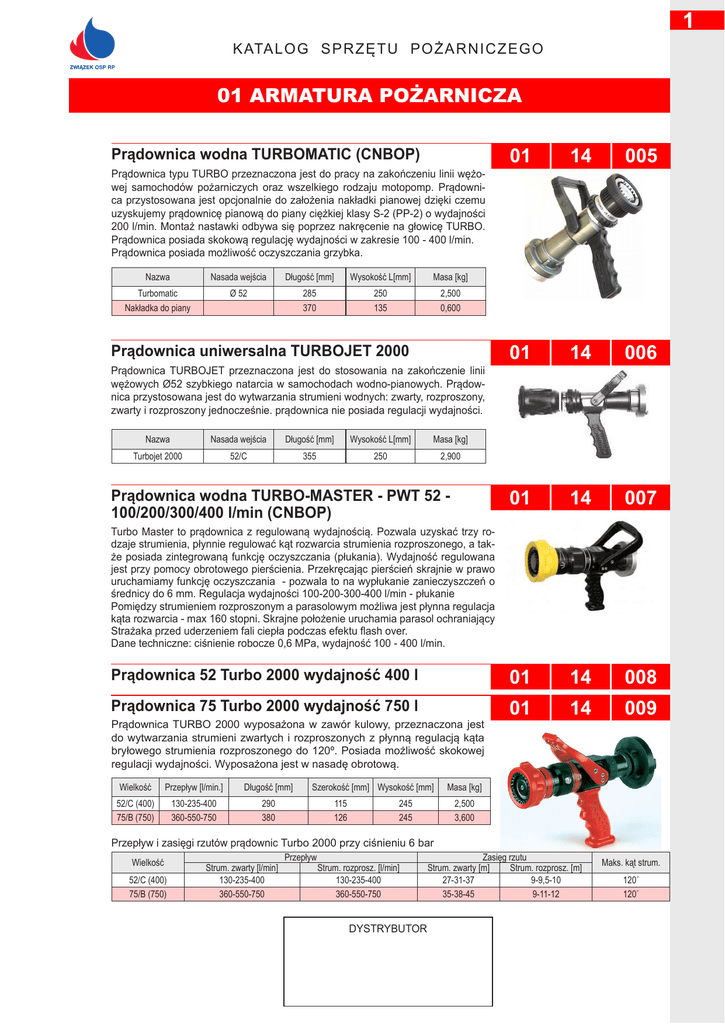 01 ARMATURA POŻARNICZA 01 14 006 01 14 007 01 14 008 01