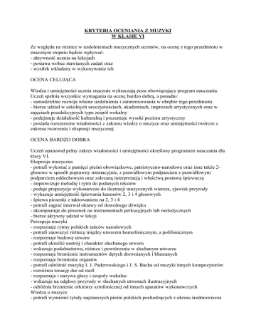 KRYTERIA OCENIANIA Z MUZYKI W KLASIE VI Ze względu na