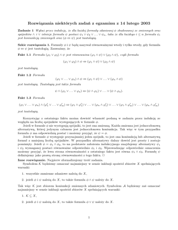 spójników ∧ i ∨ istnieje formuła ψ postaci ψ1 ∨ ψ2 ∨ . . . ∨ ψn , taka że dla każdego i ≤ n formuła ψi