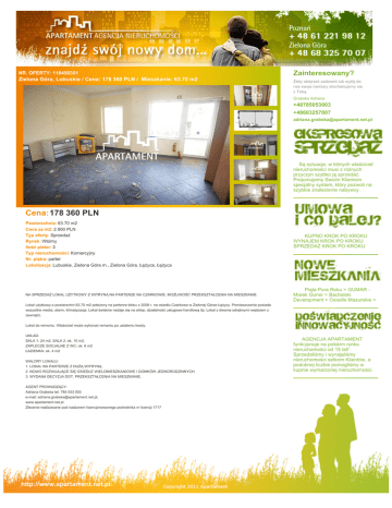 Cena:178 360 PLN - Nieruchomości Zielona Góra