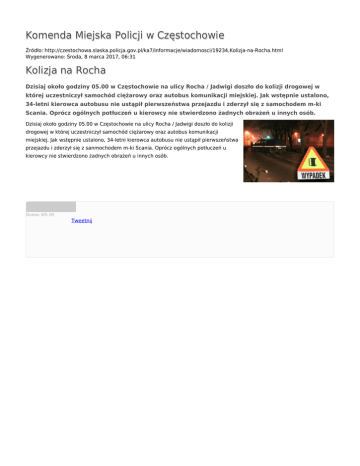 Komenda Miejska Policji w Częstochowie Kolizja na Rocha
