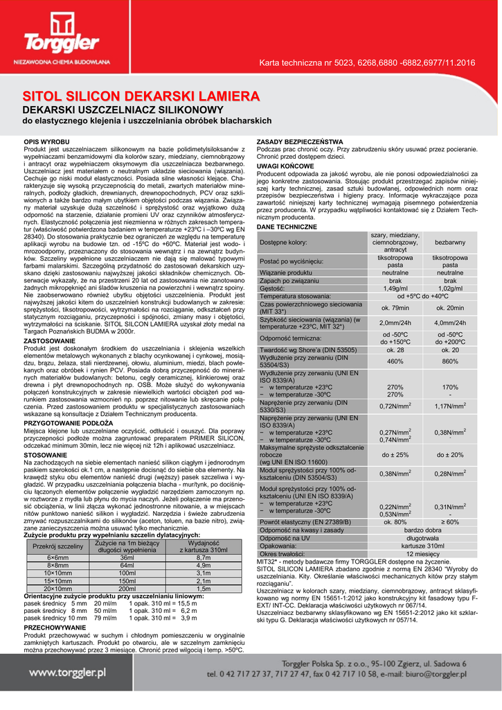 KARTA TECHNICZNA SITOL SILICON DEKARSKI Lamiera