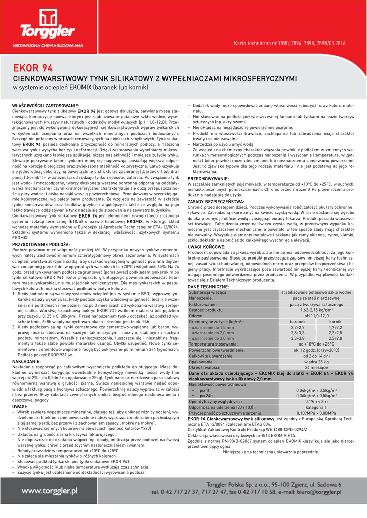 karta techniczna ekor 94 tynk silikatowy