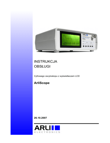 INSTRUKCJA OBSŁUGI Cyfrowego oscyloskopu z wyświetlaczem LCD ArliScope 26.10.2007 Instrukcja obsługi oscyloskopu ArliScope 1 Opis Oscyloskop jest najważniejszym urządzeniem wykorzystywanym w diagnostyce samochodowej, w serwisach elektronicznych oraz przez hobbystów. Jest niezastąpiony przy badaniu, naprawie i konstruowaniu wszelkich urządzeń elektronicznych. Rys. 1. Widok ogólny oscyloskopu Większość oscyloskopów elektronicznych dostępnych na rynku to tanie rozwiązania wykorzystujące kartę dźwiękową komputera. Ogranicza to zastosowanie z powodu bardzo wolnego próbkowania, maksymalnie 44kS/s, przez co urządzenie przypomina szybki woltomierz a nie oscyloskop i kompletnie nie nadaje się do większości zastosowań w elektronice. Kolejną wadą takiego rozwiązania jest konieczność podłączenia do komputera, który zawsze musi być w pobliżu. Prezentowany oscyloskop jest pozbawiony wyżej wymienionych wad. Nie wymaga podłączenia do komputera i może być całkowicie od niego niezależny. Jest to bardzo ważna cecha przydatna zwłaszcza w diagnostyce samochodowej. Parametry techniczne nie odbiegają zbytnio od dużo droższych rozwiązań firmy Velleman czy HewletPackard (ceny podobnych oscyloskopów tych firm dochodzą do 1000 zł), co jest niewątpliwie jego kolejną zaletą. Oscyloskop cechuje nieskomplikowana obsługa za pomocą menu. Oprogramowanie urządzenia zostało napisane z szybkim języku C i dodatkowo zoptymalizowane. Ważną zaletą oscyloskopu jest możliwość upgradu oprogramowania, które jest stale rozwijane i wzbogacane o dodatkowe funkcje. pomiar napięcia (V/działkę) 0.2V, 0.3V, 0.5V, 1V, 2.8V 5V, 10V Przedziały czasów (T/działkę) 5 us, 10 us, 100 us, 1 ms, 10 ms, 100 ms UWAGA !!! Po żadnym pozorem nie wolno podłączać do wejścia urządzenia prądu o napięciu przekraczającym dopuszczalny zakres, a zwłaszcza prądu sieciowego o napięciu 230V. Grozi to porażeniem elektrycznym, pożarem i zniszczeniem urządzenia. Układy i elementy urządzenia nie są dostosowane do pracy z wysokimi napięciami. W takich przypadkach reklamacji nie uwzględnia się. Instrukcja obsługi oscyloskopu ArliScope 2 Panel przedni 1 2 5 3 4 Rys. 2. Panel przedni oscyloskopu 1. 2. 3. 4. Ekran graficzny LCD. Gniazdo BNC. Przycisk włączenia/wyłączenia trybu menu. Przyciski ◄► zmiany czasu (odchylania poziomego). W trybie menu przycisk ◄ umożliwia zmianę wybranej z menu opcji. 5. Przyciski ▲▼ zmiany napięcia (odchylania pionowego). W trybie menu umożliwiają poruszanie się po liście menu. Panel tylny 1 2 3 Rys. 3. Panel tylny oscyloskopu 1. Gniazdo zasilania 9-12V AC/DC. 2. Włącznik dźwigniowy. 3. Regulator przesunięcia (offsetu) wykresu. Umożliwia skalibrowanie urządzenia. Instrukcja obsługi oscyloskopu ArliScope 3 Ekran główny oscyloskopu Ekran funkcjonalnie podzielony jest na dwie części. W części górnej prezentowany jest wykres badanego przebiegu. W części dolnej wyświetlane są mierzone parametry oraz symbole ukazujące konfiguracje urządzenia. 3 1 4 2 5 7 11 10 9 6 8 12 Rys. 4. Ekran główny oscyloskopu 1. 2. 3. 4. 5. 6. 7. 8. 9. 10. 11. Wykres badanego sygnału. Układ współrzędnych. Siatka pomiarowa. Symbol oznaczający włączenie obwodu umożliwiającego badanie ● ≈ napięcia zmiennego (usuwana jest wartość stała napięcia) ● = napięcia stałego. Wartość chwilowa napięcia [V]. Symbol amplitudy badanego sygnału, po prawej stronie podana wielkość amplitudy napięcia mierzonego sygnału. Symbol maksimum napięcia mierzonego sygnału, po prawej podana jego wielkość [V]. Symbol minimum napięcia mierzonego sygnału, po prawej podana jego wielkość [V]. Ustawiony zakres pomiarowy czasu, odchylanie poziome [T/div]. Ustawiony zakres pomiarowy napięcia, odchylanie pionowe [V/div]. Symbol ukazujący aktualny tryb pracy wyzwalacza (triggering). Obok ukazany jest ustawiony poziom wyzwalania. ● wyzwalanie zboczem narastającym ● wyzwalanie zboczem opadającym 12. Napis ukazujący tryb pracy urządzenia. Możliwe są dwa tryby: ● tryb oscyloskopu Oscill., w którym dokonujemy pomiaru sygnału, jego kształtu i napięć ● tryb ustawiania poziomu wyzwalania Trigger, za pomocą przycisków ▲▼ dokonujemy jego zmiany, pojedyncze naciśnięcie klawiszy powoduje zmiane o jednostkę, dłuższe przytrzymanie o 10 jednostek Instrukcja obsługi oscyloskopu ArliScope 4 Menu Rys. 5. Menu oscyloskopu Menu umożliwia skonfigurowanie urządzenia do pomiaru prądu o konkretnej charakterystyce. Umożliwia też ustawienie kluczowych parametrów pracy urządzenia. Do menu wchodzimy naciskają klawisz oznaczony napisem Menu. Po menu w górę i w dół poruszamy się klawiszami ozaczonymi ▲▼. Zmianę wybranej opcji z menu dokonujemy poprzez jedno- lub wielokrotne naciśnięcie przycisku oznaczonego ◄. Menu składa się następujacych opcji: 1. Wybór rodzaju mierzonego prądu: ● AC – pomiar prądu zmiennego (następuje odcięcie składowej stałej z przebiegu poprzez włączenie specjalnego obwodu) ● DC – pomiar prądu stałego 2. Wybór rodzaju układu współrzędnych i siatki. Możliwe są cztery opcje: ● Układ – włączenie osi X i Y układu współrzędnych, ułatwiającego określenie wielkości napięcia i czasu mierzonego sygnału ● Siatka – włączenie siatki określającej działki, również ułatwia odczyt ● Razem – włączenie naraz układu współrzędnych oraz siatki ● Brak – wyłączenie układu i siatki, ekran pod wykresem pozostaje pusty 3. Wybór rodzaju wykresu. Możliwe są następujące opcje: ● Liniowy – poszczególne punkty wykresu są połączone liniami, zwiększa się przez to czytelność wykresu, zwłaszcza przy obserwacji wyższych częstotliwości ● Kropkowy – wyświetlane są poszczególne punkty badanego przebiegu, opcja umożliwia szybsze rysowanie skomplikowanych kształtów wykresów 4. Wybór trybu pracy wyzwalacza (triggering). Umożli