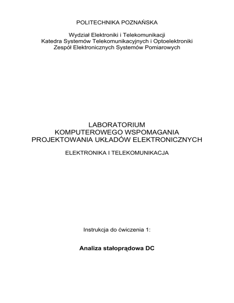 zapoznanie z możliwościami analizy stałoprądowej DC w programach symulacyjnych SPICE i