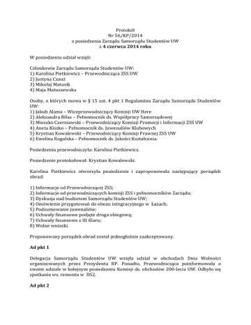 Protokół Nr 56/KP/2014 z posiedzenia Zarządu Samorządu