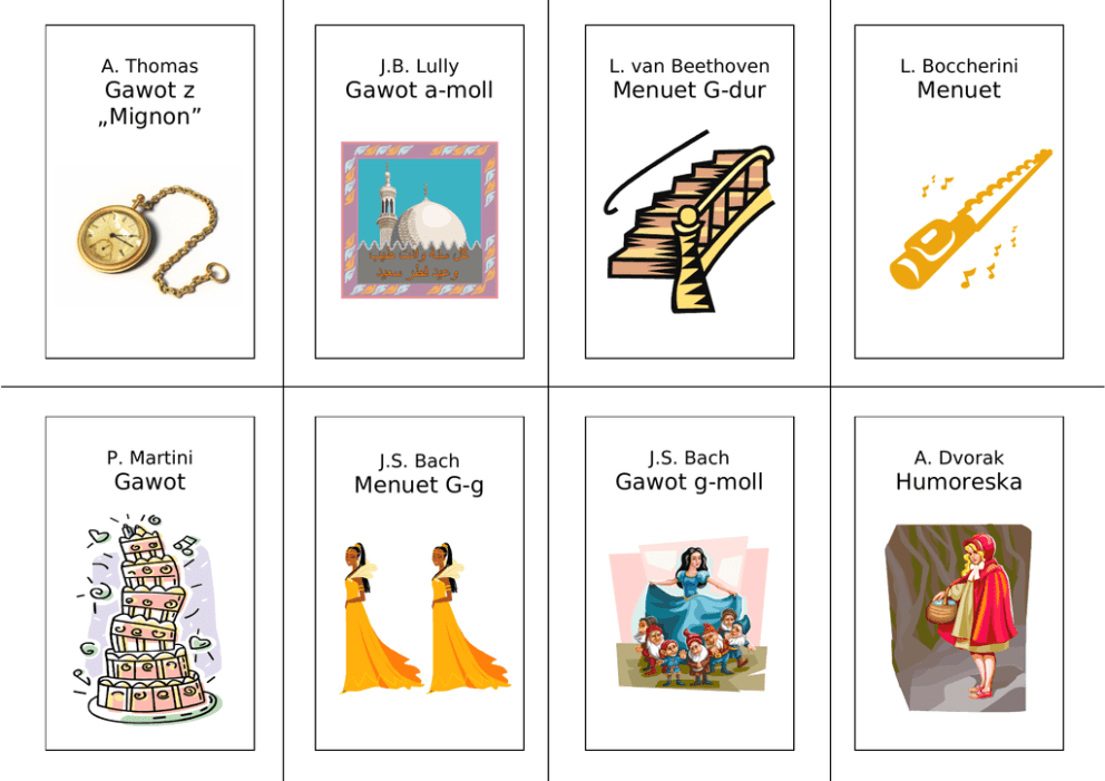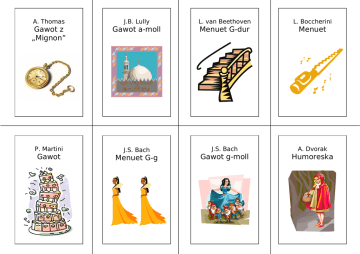 A. Thomas J.B. Lully L. van Beethoven L. Boccherini Gawot z „Mignon” Gawot a-moll Menuet G-dur Menuet P. Martini J.S. Bach J.S. Bach A. Dvorak Gawot Menuet G-g Gawot g-moll Humoreska