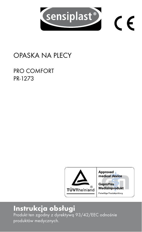 OPASKA NA PLECY pro comfort PR-1273 Instrukcja obsługi Produkt ten zgodny z dyrektywą 93/42/EEC odnośnie produktów medycznych. 2 Instrukcja użycia Zakres dostawy Skład surowcowy Zastosowane symbole Zastosowanie zgodne z przeznaczeniem Wskazówki dotyczące bezpieczeństwa Zakładanie bandaża Czyszczenie i pielęgnacja Uwagi odnośnie recyklingu 3 lata gwarancji Servis 4 4 4 4-5 5 6 7 7 7 8 3 Producent i importer nie ponoszą żadnej odpowiedzialności w przypadku nieprawidłowego zastosowania artykułu lub w przypadku nieprzestrzegania wskazań podanych w tej instrukcji! Przed użyciem przeczytaj dokładnie instrukcję obsługi. Zachowaj ją koniecznie w celu późniejszego przeczytania! Zakres dostawy 1 x Instrukcja użycia 1 x Opaska na plecy w tym 2 wkładki lędźwiowe i pas ściskający Skład surowcowy Obwód w pasie: XS - M 66 - 82 cm M - L 80 - 98 cm L - XXL 96 - 116 cm Zastosowane symbole Przestrzegać instrukcji obsługi Data produkcji Określenie urzędu Producent Zastosowanie zgodne z przeznaczeniem Artykuł ten jest wyprodukowany do prywatnego użytku i nie może być noszony nieprzerwanie dłużej niż 2-3 godziny jak również nie dłużej niż 6-8 godzin dziennie. 4 Do wspierającego zastosowania przy: 1. Bólach w dolnej części kręgosłupa (obszar lędźwiowy, L) 2.Zużyciu małych stawów kręgosłupa (lędźwiowe zwyrodnienie stawów kręgosłupa) 3.Skurczach mięśni 4.Sportowym i fizycznym obciążeniu 5.Nadruchliwości kręgosłupa lędźwiowego Nie stosować lub stosować jedynie po konsultacji z lekarzem przy: 1. Wysokostopniowej niestabilności obszaru lędźwiowego 2.Zewnętrznych urazach 3.Neurologicznych deficytach (promieniujące bule nerwów lub bezwład dolnej partii ciała) 4.Zaburzeniach krążenia Wskazówki dotyczące bezpieczeństwa Niebezpieczeństwo urazu! • Jeśli wystąpią problemy podczas noszenia należy natychmiast usunąć opaskę i skonsultować się z lekarzem. • Należy zakładać opaskę jedynie tak mocno, aby nie ograniczać dopływu krwi. • Przed każdym użyciem należy sprawdzać opaskę czy nie jest uszkodzona. • Artykuł może być jedynie stosowany w nienagannym stanie. • Nie należy nosić artykułu podczas snu lub dłuższego wypoczynku jak np. dłuższego siedzenia. Niebezpieczeństwo podrażnienia skóry! • W pojedynczych przypadkach może dojść do reakcji skórnych i podrażnień. • Nie należy nosić artykułu nie dłużej niż 6-8 godzin dziennie jak również nie dłużej niż 2-3 godziny nieprzerwanie oraz należy regularnie myć miejsca zakryte, aby uniknąć podrażnień skóry. • W celu uniknięcia alergicznych reakcji skórnych skóra musi być wolna od żelów, tłuszczy, maści, olejków lub podobnych substancji. Jeśli wystąpią mimo to problemy należy skonsultować się z lekarzem. 5 Zakładanie bandaża Wkładki lędźwiowe (możliwość wyciągnięcia) Opaska jest dobrze założona, gdy wkładki lędźwiowe odczuwalnie leżą nad pośladkami. Wkładki lędźwiowe Il. 1 Pas ściskający (możliwość usunięcia dzięki zapięciu na rzep) Przy pomocy pasa ściskającego jest osiągnięta dodatkowa stabilizacja obszaru lędźwiowego. Im wyższe naprężenie przy zakładaniu pasa tym większa stabilizacja. Zapięcie na rzep Pas ściskający Il. 2 Ilustracja 1: Przed założeniem artykułu należy poluzować boczne zapięcia na rzep pasa ściskającego. Ilustracja 2: Zapiąć rzepy opaski. Opaska powinna wygodnie leżeć i być lekko napięta. Ilustracja 3: Pas należy napinać obiema rękami. Ilustracja 4: Zapiąć po kolei boczne rzepy pasa. 1 2 6 3 4 Czyszczenie i pielęgnacja • Przed pierwszym użyciem bandaża należy go gruntownie wyprać. • Po każdorazowym dwu lub trzykrotnym użyciu zaleca się jego ponowne wypranie. • Złóż podczas prania zapięcia rzepowe. • Po wypraniu bandaż należy dokładnie wypłukać. • Prać oddzielnie. Uwagi odnośnie recyklingu Opakowanie i artykuł usunąć zgodnie z przepisami o ochronie środowiska! Artykuł oddać do utylizacji w autoryzowanym zakładzie oczyszczania i przetwarzania odpadów lub do odpowiedniej jednostki w gminie. Prosimy stosować się do aktualnie obowiązujących przepisów. 3 lata gwarancji Produkt został wyprodukowany z dużą starannością i pod ciągłą kontrolą. Otrzymują Państwo na ten produkt 3 lata gwarancji od daty zakupu. Prosimy o zachowanie paragonu. Gwarancja obowiązuje jedynie w razie wad materiałowych i fabrycznych, przy nieodpowiedniej obsłudze przepada. Państwa ustawowe prawa, w szczególności prawa do gwarancji, nie zostaną ograniczone tą gwarancją. W razie gwarancji należy się z nami skontaktować telefonicznie przez bezpłatny numer naszej Service-Hotline lub mailowo. W każdym przypadku otrzymają Państwo osobistą pomoc. W przypadku gwarancji można wysyłać nieodpłatnie uszkodzone elementy na nasz adres serwisowy po wcześniejszym porozumieniu z naszym pracownikiem. Bezzwłocznie otrzymają Państwo bezpłatnie z powrotem nowy lub naprawiony element. Czas gwarancji nie jest przedłużany w razie ewentualnych napraw w oparciu o gwarancję lub naprawę poza gwarancyjną. Obowiązuje to również przy wymienionych lub naprawionych elementach. Po upływie gwarancji zaistniałe naprawy są płatne. IAN: 63728 7 Serwis Adres Service Infolinia ds. Produktu 00800-4911384 (poniedziałek - piątek w godzinach 10 - 16, bezpłatnie) Bogusław Możdżonek • ul.Jawirskiego 21B / 28 05-520 Konstancin - Jeziorna [email protected] Ispisana verzija: 201106V1 www.nws-service.com DELTA-SPORT HANDELSKONTOR GMBH Wragekamp 6 · D-22397 Hamburg