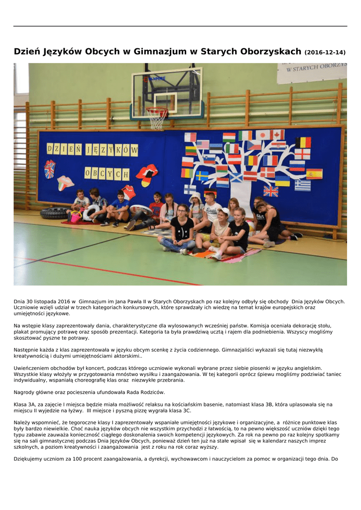 Dzień Języków Obcych w Gimnazjum w Starych Oborzyskach (2016