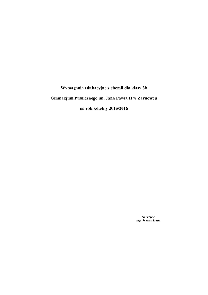 Joanna Szasta - chemia - Gimnazjum Publiczne w Żarnowcu
