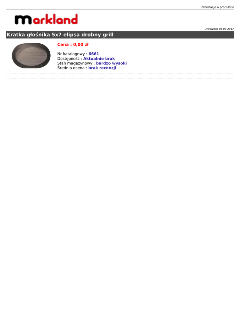 Informacje o produkcie Utworzono 08-03-2017 Kratka głośnika 5x7 elipsa drobny grill Cena : 0,00 zł Nr katalogowy : 6661 Dostępność : Aktualnie brak Stan magazynowy : bardzo wysoki Średnia ocena : brak recenzji