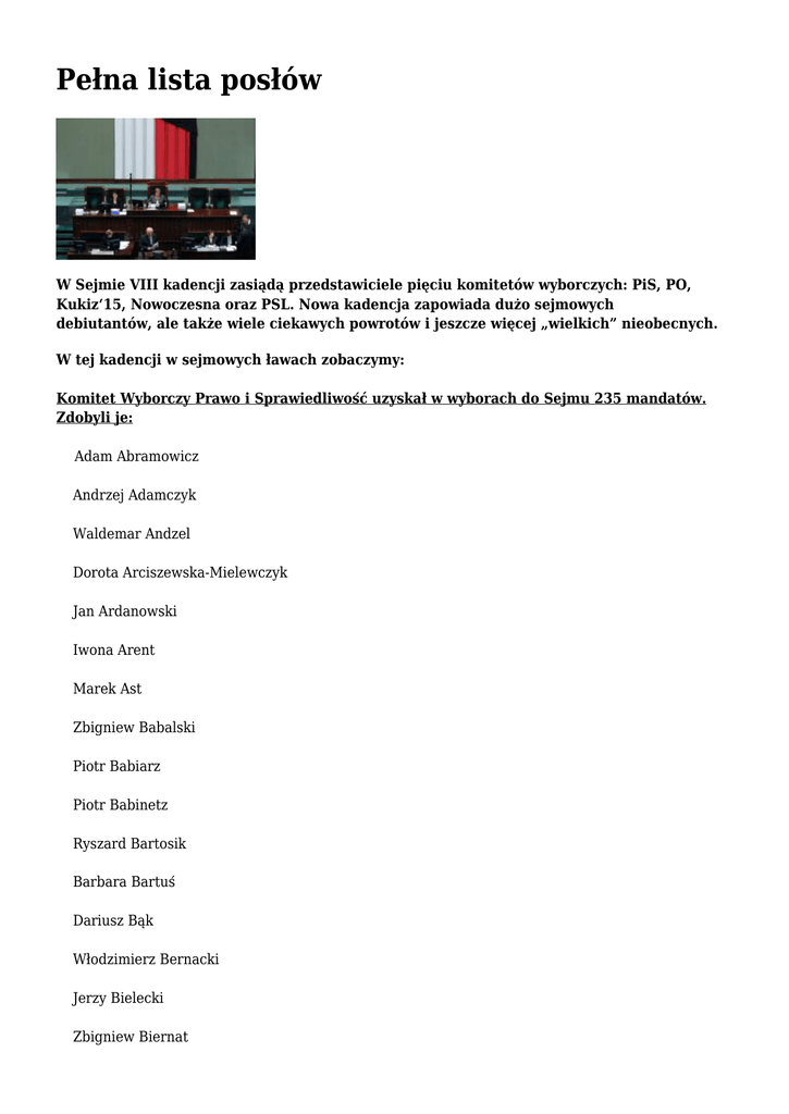 Pełna lista posłów