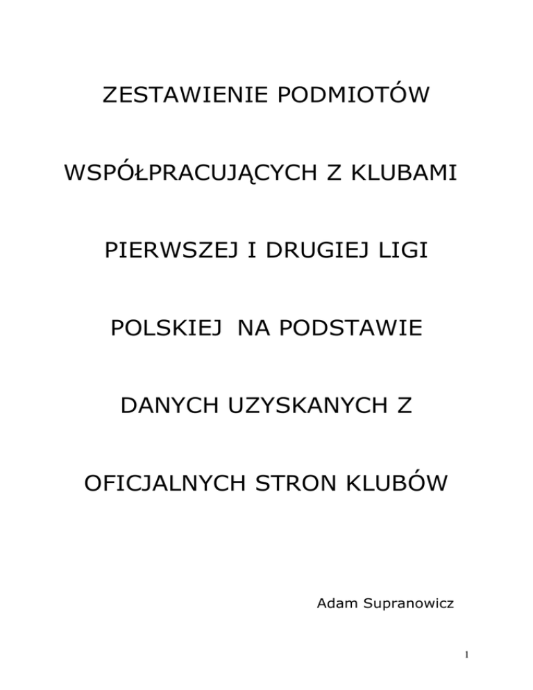 Zestawienie Podmiotów Na Stronach WWW Polskich Klubów 1 i 2