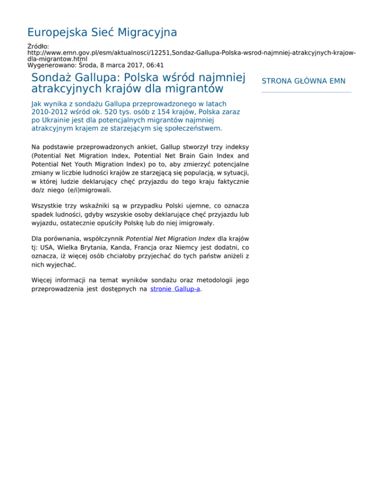 Europejska Sieć Migracyjna Sondaż Gallupa: Polska wśród