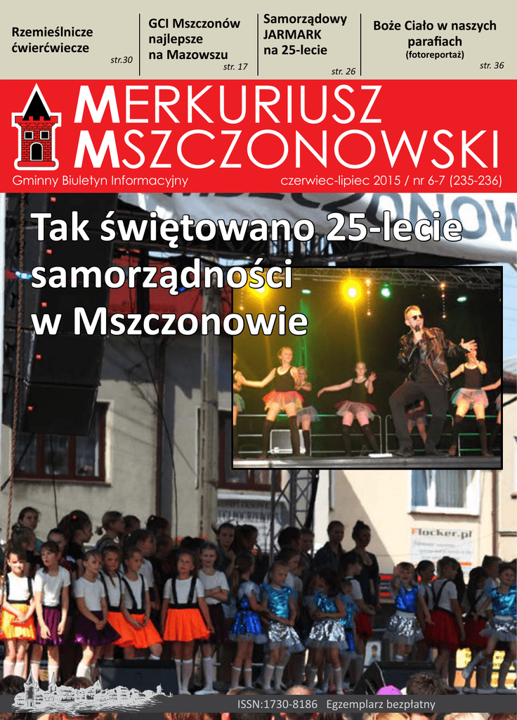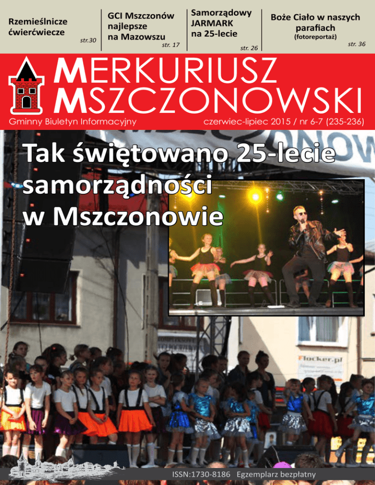 Rzemieślnicze ćwierćwiecze str.30 GCI Mszczonów najlepsze na Mazowszu str. 17 Samorządowy JARMARK na 25-lecie Boże Ciało w naszych parafiach (fotoreportaż) str. 26 str. 36 MERKURIUSZ MSZCZONOWSKI Gminny Biuletyn Informacyjny czerwiec-lipiec 2015 / nr 6-7 (235-236) Tak świętowano 25-lecie samorządności w Mszczonowie ISSN:1730-8186 Egzemplarz bezpłatny W NUMERZE MOC ATRAKCJI JARMARK XIX-ty Spis treści 23 Tak świętowano 25-lecie samorządności w Mszczonowie 3 Z obrad IX i X sesji Rady Miejskiej w Mszczonowie 6 Z prac komisji 12 O AquaParku, delfinarium, gminnych inwestycjach i skutkach wandalizmu… 14 Żeglarstwo daje wolność 15 Mszczonów kulturą stoi 16 Mszczonów - EURO GMINĄ17 GCI Mszczonów najlepsze na Mazowszu Dla przedsiębiorców 18 Ich pierwszy koncert… 20 17 Mszczonowscy historycy omawiali „dziś” i „jutro” swojego Stowarzyszenia 20 Śpiewali wraz z radnymi 21 Ognisty pojedynek na stadionie Mszczonowianki GCI Mszczonów najlepsze na Mazowszu 17 MOC ATRAKCJI - JARMARK XIX-ty 23 Festiwalu Świętojańskiego czar 25 22 Samorządowy JARMARK na 25-lecie 26 25 lat samorządu zawisło w Galerii MOK-u Rzemieślnicze ćwierćwiecze 29 30 Nowe miejsca pracy w Mszczonowie32 ŚP. Henryk Supeł - pożegnanie samorządowca32 W poszukiwaniu wspomnień z dzieciństwa 32 Lokalni aktywiści pokazują, że można! 33 „Kuglarze” na mszczonowskim rynku 34 Na szlaku mszczonowskich questów 35 Dzień dziecka - aktywnie i z pasją 36 Fotoreportaż - Boże Ciało w naszych parafiach36 Możesz sam wybrać swoją świątynię 40 Święta czuwająca nad najpiękniejszym zakątkiem Ziemi Mszczonowskiej 41 Samorządowy JARMARK na 25-lecie 26 Historyczna wystawa mszczonowskiego hufca 42 Wakacyjna modelarnia w Mszczonowie Początek lipca na TERMACH Jubileusz małżeński 43 43 44 Młodzi muzycy podsumowali rok edukacji 44 Choć minęło pół wieku-dla nich matura była …wczoraj 45 Strażacki weekend 45 Zakończenie roku w świetlicy „Uśmiech Dziecka” GRH „Strzelcy” 52 58 LATO W MIEŚCIE 2015 - Z MSZCZONOWSKIM OŚRODKIEM KULTURY 74 2 czerwiec-lipiec 2015 / nr 6-7 (235-236) WIEŚCI Z RATUSZA 25-LECIE SAMORZĄDU MSZCZONOWA Tak świętowano 25-lecie samorządności w Mszczonowie W Mszczonowie trwają uroczyste obchody 25-lecia działalności samorządu. Cykl uroczystości i imprez koordynowany przez Gminne Centrum Informacji, zatytułowany „Wolny-Samorządny”, rozpoczął się 3 maja, podczas obchodów Święta Narodowego. Rocznicowa Sesja Rady Miejskiej - będąca częścią oficjalnych obchodów - odbyła się 28 maja. Miała ona niecodzienny porządek obrad i specjalną, świąteczną oprawę. Jej część robocza, poprowadzona została w sali konferencyjnej Urzędu Miejskiego, zaś uroczysta w sali widowiskowej Mszczonowskiego Ośrodka Kultury. Uczestniczyło w niej blisko dwieście osób, reprezentujących działaczy samorządowych wszystkich dotychczasowych kadencji Rady Miejskiej, radni powiatowi, burmistrzowie, starosta, zasłużeni Mieszkańcy Mszczonowa, sołtysi, a także reprezentanci- Urzędu Miejskiego , placówek oświatowych i jednostek organizacyjnych gminy. Przybyłych na uroczystość powitał inicjator całego rocznicowego przedsięwzięcia - przewodniczący Rady Miejskiej Łukasz Koperski. Następnie odegrany został Hymn Polski. Po nim przewodniczący poprosił zebranych o pozostanie w pozycji zasadniczej i odczytał nazwiska wszystkich zmarłych radnych i członków Zarządu Miasta. Minutą ciszy uczczono pamięć śp. : Alfreda Arendarczyka, Tadeusza Woźniaka, Edwarda Stańczaka, Bogusława Karlińskiego, Kazimiery Mirgos, Jerzego Rybińskiego, Edwarda Zabłockiego, Henryka Wójcika, Krzysztofa Gołyńskiego, Wojciecha Horbota i wiceburmistrza Mariana Jackowskiego. W części poświęconej oficjalnym przemówieniom głos zabrali: przewodniczący RM Łukasz Koperski, burmistrz Józef Grzegorz czerwiec-lipiec 2015 / nr 6-7 (235-236) 3 WIEŚCIWZNUMERZE RATUSZA Kurek, ks. dziekan Tadeusz Przybylski (proboszcz Parafii farnej pw. Świętego Jana Chrzciciela), radny pierwszej kadencji Piotr Słojewski, starosta Wojciech Szustakiewicz i pierwszy przewodniczący mszczonowskiej Rady Miejskiej (1990-94) Zdzisław Banasiak. Burmistrz Józef Grzegorz Kurek rozpoczął swoje przemówienie od podziękowań i przeprosin. Podziękował wszystkim, z którymi dane mu było tworzyć mszczonowski samorząd, a przeprosił tych, których w trakcie swej kadencji uraził. Praca samorządowca – jak tłumaczył - nie jest łatwa. Cały czas towarzyszą jej lepsze i gorsze kompromisy. Nie wszystkie one są dobrze odbierane. Burmistrz zapewnił jednak, że zawsze starał się działać w interesie ogółu mieszkańców gminy i tej zasadzie nadal zamierza dochowywać wierności. Z tego też powodu bardzo ceni sobie apolityczność władz samorządowych Mszczonowa, bo jak zaznaczył „żadna z partii politycznych nie ma monopolu na rację – rację mają ludzie i dlatego należy się liczyć się z ich potrzebami i oczekiwaniami”. 4 czerwiec-lipiec 2015 / nr 6-7 (235-236) Ks. dziekan Przybylski, podziękował w swoim wystąpieniu za to, w jaki sposób mszczonowscy samorządowcy odnoszą się do spraw religijnych i jak układają się relacje pomiędzy nimi, a władzami kościelnymi. Jego zdaniem – od samego początku doświadczał się w Mszczonowie życzliwości i zrozumienia ze strony władz, które rozumieją potrzeby Kościoła. Rady pierwszej samorządowej Kadencji (190-94) – Piotr Słojewski - wspominał, jakie były początki mszczonowskiej samorządności i wskazywał na olbrzymi postęp infrastrukturalny, jaki dokonał się w ciągu 25 lat na terenie całej gminy. W podobnym duchu wypowiadał się pierwszy przewodniczący Rady Miejskiej (z okresu tej samej kadencji) Zdzisław Banasiak. Nawoływał on, aby Gmina Mszczonów w swoim rozwoju postawiła teraz na inwestycje: ekologiczne, rekreacyjne i nieuciążliwe dla mieszkańców. Starosta Wojciech Szus
