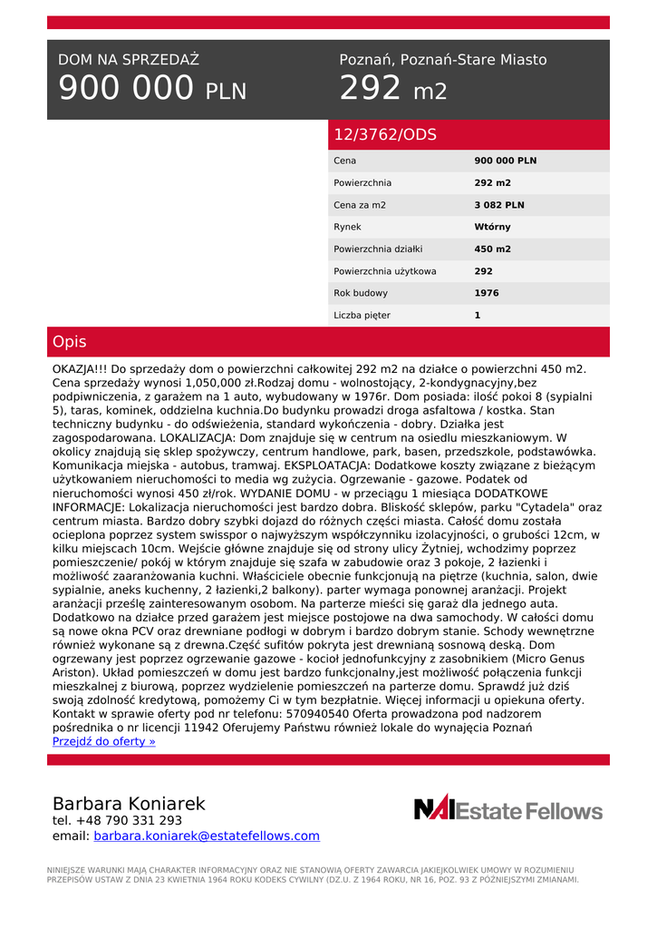 900 000 PLN 292 m2 - NAI Estate Fellows