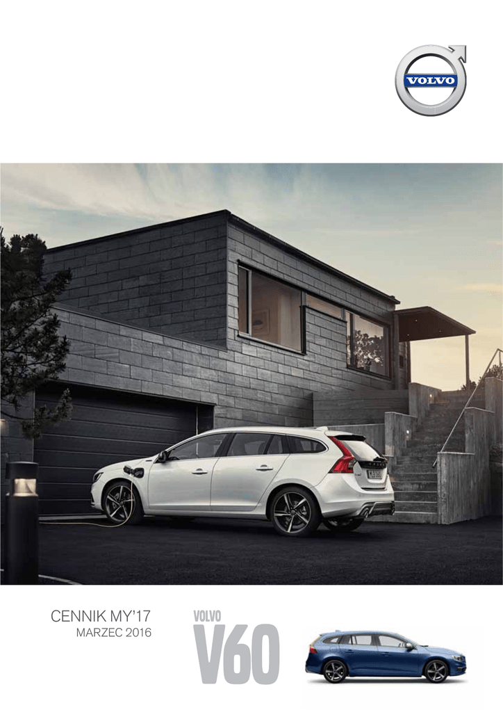 VOLVO V60 | 1 CENNIK MY’17 MARZEC 2016 VOLVO V60 | 2 VOLVO V60 | 3 SPIS TREŚCI Jednostki napędowe 04 Plug-in Hybrid 05 Technologia 06 Wyposażenie standardowe 07 Volvo V60 Plug-in Hybrid 09 11 Edycja specjalna Volvo Ocean Race 12 Bezpieczeństwo 14 Komfort 15 Funkcjonalność 16 Plug-in Hybrid 17 17 Koła 18 Tapicerki 20 Wykończenie wnętrza 23 Lakiery 24 Promocyjne pakiety wyposażenia 25 Promocyjne pakiety wyposażenia dla edycji VOLVO OCEAN RACE 27 Volvo On Call 28 29 Akcesoria 32 Pakiety gwarancyjne 33 Dane techniczne 34 VOLVO V60 | 4 SILNIKI BENZYNOWE Silnik Cena w zł z VAT (litr/KM) Skrzynia biegów Base Kinetic Momentum Summum 2.0/152 manualna, 6 biegów - 128 300 140 400 153 700 1.5/152 automatyczna Geartronic, 6 biegów - 137 600 149 700 163 000 2.0/190 manualna, 6 biegów - 142 400 154 500 167 800 2.0/190 automatyczna Geartronic, 6 biegów - 151 700 163 800 177 100 T5 2.0/245 automatyczna Geartronic, 8 biegów - 156 600 168 700 182 000 T6 2.0/306 automatyczna Geartronic, 8 biegów - - 186 900 200 200 T6 AWD 2.0/306 automatyczna Geartronic, 8 biegów - - 217 300 230 600 T3 T4 Polestar Performance dla V60 T5 i T6 Oprogramowanie Polestar zmienia charakterystykę układu napędowego, zwiększa moc oraz moment obrotowy Twojego Volvo. SILNIKI DIESLA Silnik (litr/KM) Cena w zł z VAT Skrzynia biegów Base Kinetic Momentum Summum 2.0/120 manualna, 6 biegów 129 900 134 800 146 900 160 200 2.0/120 automatyczna Geartronic, 6 biegów 139 200 144 100 156 200 169 500 2.0/150 manualna, 6 biegów - 142 700 154 800 168 100 2.0/150 automatyczna Geartronic, 6 biegów - 152 000 164 100 177 400 2.0/190 manualna, 6 biegów - 149 500 161 600 174 900 2.0/190 automatyczna Geartronic, 8 biegów - 158 800 170 900 184 200 D4 AWD 2.4/190 automatyczna Geartronic, 6 biegów - 167 200 179 300 192 600 D5 2.0/225 automatyczna Geartronic, 8 biegów - 171 100 183 200 196 500 D2 D3 D4 Polestar Performance dla V60 D4 Oprogramowanie Polestar zmienia charakterystykę układu napędowego, zwiększa moc oraz moment obrotowy Twojego Volvo. VOLVO V60 | 5 Plug-in Hybrid Silnik (litr/KM) Cena w zł z VAT Skrzynia biegów Base Kinetic Momentum Summum D6 AWD PHEV 2.4/288 automatyczna Geartronic, 6 biegów - - 265 800 279 100 D6 AWD R-Design PHEV 2.4/288 automatyczna Geartronic, 6 biegów - - 277 400 - Polestar Performance dla V60 D6 AWD Oprogramowanie Polestar zmienia charakterystykę układu napędowego, zwiększa moc oraz moment obrotowy Twojego Volvo. VOLVO V60 | 6 TECHNOLOGIA Sensus, Intellisafe i Drive-E - teraz możesz jeździć tak, jak zawsze chciałeś. Ty i Twój pojazd: zawsze razem. Siłą skandynawskiego design'u jest połączenie elegancji i funkcjonalności. Przykładem jest Sensus. Ten zintegrowany system informacyjny, rozrywkowy i pomocniczy umożliwia zupełnie nowy, intuicyjny sposób połączenia z Twoim pojazdem. Z pomocą Sensus można bardzo prosto ustawić wszystkie aspekty jazdy pod swoje osobiste potrzeby. Ale to nie wszystko. Twoje Volvo stanie się częścią Twojego cyfrowego świata, tak perfekcyjnie dopasowane, że nawet nie będziesz potrzebował instrukcji obsługi - po prostu wsiądź i jedź! Nowa definicja bezpieczeństwa - dzień po dniu. Inteligentne bezpieczeństwo dla Ciebie i wszystkich wokoło. W kwestii bezpieczeństwa Volvo jest liderem i to od roku 1927. Intellisafe to nasze całościowe podejście do kwestii bezpieczeństwa pojazdu. Jazda z intellisafe jest prosta, bezstresowa i sprawia więcej radości. Stanowi aktywne wsparcie w trakcie jazdy. Dzięki innowacyjnym technologiom takim jak układ monitorujący "martwe pola" widoczności, aktywny tempomat oraz ostrzeganie o ryzyku kolizji z rozpoznawaniem pieszych oraz rowerzystów z pełnym automatycznym hamowaniem możesz jeździć bezpiecznie i spokojnie. System bezpieczeństwa Citysafety skanuje Twoje otoczenie pod kątem niespodziewanych sytuacji i pomaga uniknąć nieszczęśliwych wypadków. We wnętrzu każdego Volvo chroni Cię solidna karoseria, boczna konstrukcja wykonana z niezwykle wytrzymałej stali borowej i nasz innowacyjny system zabezpieczający przed bocznymi uderzeniami (SIPS). Sensem i celem Intellisafe jest stworzenie pojazdów, które całkowicie unikają stłuczek. Ponieważ bezpieczeństwo od dawien dawna jest mocną stroną Volvo – pod każdym względem. Sprawność. Ochrona środowiska. Wydajność. Drive-E to nasze kompleksowe rozwiązanie dla idei zrównoważonej jazdy. Cały szereg innowacyjnych technologii łączy więcej mocy, większą sprawność i więcej radości z jazdy, a zarazem chroni środowisko. Drive-E oznacza nowe, skuteczne i wydajne silniki, pojazdy plug-in Hybrid, wysokowydajne akumulatory, technologię stop/start, systemy odzysku energii i wreszcie długofalową produkcję. My S60 Distance Alert BLIS DSTC City Safe f ty Driver Alert Provides time interval information to vehicle ahead Collision Warning Lane Departure Warning Reduced guard Active bending lights Auxiliary lights VOLVO V60 | 7 WYPOSAŻENIE STANDARDOWE Opis wyposażenia Base Kinetic Momentum Summum Bezpieczeństwo: z z z z z z z z z z – CITY SAFETY - laserowy czujnik ograniczający ryzyko kolizji (działa do 50 km/h) – 6 poduszek powietrznych: dla kierowcy i pasażera, dwie poduszki boczne (dwukomorowe), kurtyny powietrzne (IC) – autoalarm Volvo Guard z czujnikiem przechyłu oraz ruchu – DSTC (DYNAMIC STABILITY AND TRACTION CONTROL) - układ kontroli stabilności dynamicznej kontroli trakcji – SIPS (SIDE IMPACT PROTECTION SYSTEM) system zabezpieczeń przed skutkami uderzeń bocznych – WHIPS (WHIPLASH PROTECTION SEATING SYSTEM) system zabezpieczeń przed urazami kręgosłupa szyjnego – ABS (ANTI-LOCK BRAKE SYSTEM) z elektronicznym układem rozdziału sił hamowania (EBD – Electronic Brake Distribution) – CTC (CORNER TRACKING CONTROL) - kontrola trakcji w zakręcie – oświetlenie asekuracyjne Home Safe – sygnalizacja niezapiętych pasów bezpieczeństwa dla wszystkich miejsc – EBA (EMERGENCY 
