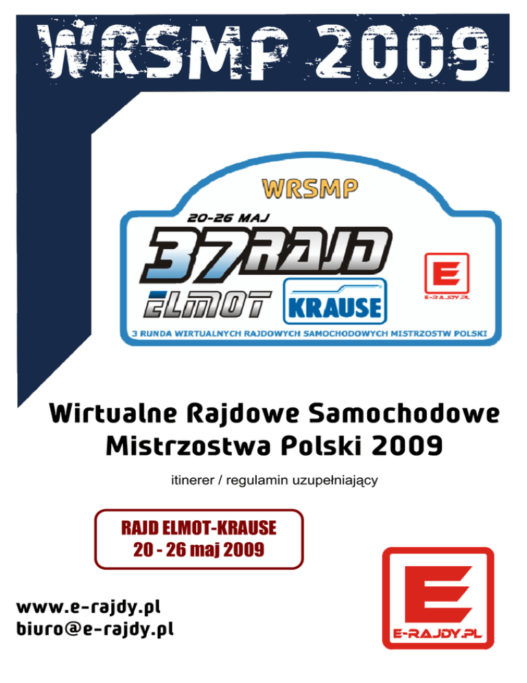 Wirtualne Rajdowe Samochodowe Mistrzostwa Polski 2009 itinerer / regulamin uzupełniający RAJD ELMOT-KRAUSE 20 - 26 maj 2009 www.e-rajdy.pl [email protected] WIRTUALNE RAJDOWE SAMOCHODOWE MISTRZOSTWA POLSKI 2009 Rajd Elmot-Krause to dla wielu zawodników ulubiony rajd w Polsce. Trudno się im dziwić patrząc na malowniczo połoŜone odcinki specjalne. Popularny "Elmot" to przede wszystkim najbardziej znane miejsce dla rajdowych kibiców w Polsce. Oczywiście chodzi o słynne walimskie patelnie. W tym roku przejeŜdŜane będą trzykrotnie "w dół", jako OS 8,11 i 14. Pierwszego dnia zmagań z pewnością stresujące dla kierowców będzie inne z klasycznych sekcji Rajdu Elmot-Krause, a mianowicie spadanie na odcinku Michałkowa - Rościszów (OS 2 i 5). Tradycyjnie niektórzy z kierowców z pewnością zakończą tam swoje zmagania... Oby było ich jak najmniej. Rajd Elmot-Krause zostanie rozegrany na 15 odcinkach specjalnych o łącznej długości 105,8km. ITINERER: 1) Warunki techniczne dopuszczenia do rajdu: − oryginalna kopia Richard Burns Rally, − połączenie internetowe (minimum 28,8 kbps), − oficjalny patch 1.02 do gry Richard Burns Rally, − plugin RBR Tournament v. 0.87E dla Richard Burns Rally, − dodatek RBRPribram2 dla Richard Burns Rally (z odcinkami Strýčkovy - Zadni Porici i Osli - Stryckovy), − licencja WRSMP 2009. 2) Opcjonalne modyfikacje dopuszczone w rajdzie: − dodatkowe samochody homologowane przez zespół RBR Czech. 3) Regulamin rajdu: − rajd zostanie przeprowadzony na podstawie Regulaminu WRSMP 2009. 4) Kary regulaminowe - zawieszenie licencji na czas trwania Rajdu ELMOTKrause: − Mazur Szymon, − ZAK Przemek − Jurek BOGDANOWICZ. 5) Przywrócenie licencji po Rajdzie Krakowskim: − KAPICA Wojciech, − golab44, − nms_007. Rajd ElmotElmot-Krause 20 - 26 maja 2009 1 WIRTUALNE RAJDOWE SAMOCHODOWE MISTRZOSTWA POLSKI 2009 6) Harmonogram rajdu: Rajd ELMOT-Krause Czas trwania: 20 - 26 maja 2009r. OS Nazwa Nazwa (RBR) długość [km] czas [min] pogoda nawierzchnia 0 SHAKEDOWN Cote D'Arbroz II 4,3 1 Witoszów - Złoty Las Cote D'Arbroz 4,5 dry / new 2 Michałkowa - Rościszów Joux Plane II 11,1 dry / new 3 Kamionki - Jawornik Osli - Stryckovy 10,6 dry / new dry / new 20 4 Witoszów - Złoty Las Cote D'Arbroz 4,5 dry / new 5 Michałkowa - Rościszów Joux Plane II 11,1 dry / new 6 Kamionki - Jawornik Osli - Stryckovy 10,6 dry / new 60 7 Złoty Las - Witoszów Cote D'Arbroz II 4,3 SR wet / new 8 Rościszów - Walim Joux Verte 7,9 wet / new 9 Sokolec - Kamionki Bisanne II 5,6 wet / new 10 Złoty Las - Witoszów Cote D'Arbroz II 4,3 wet / new 11 Rościszów - Walim Joux Verte 7,9 wet / new 12 Sokolec - Kamionki Bisanne II 5,6 20 wet / new 20 13 Złoty Las - Witoszów Cote D'Arbroz II 4,3 damp / new 14 Rościszów - Walim Joux Verte 7,9 damp / new 15 Sokolec - Kamionki Bisanne II 5,6 damp / new SR SUMA 105,8 --- --- --- 7) Linki: − Odcinek testowy: http://rbr.onlineracing.cz/index.php?act=tourmntsview&torid=2b366e37774fb00a41cc798636323f92&setlng=eng − Rajd Elmot-Krause: http://rbr.onlineracing.cz/index.php?act=tourmntsview&torid=14868c47063956bdb76726a525227d6b&setlng=eng − Biuro Rajdu: http://e-rajdy.pl/forum/viewtopic.php?f=81&t=4651 Rajd ElmotElmot-Krause 20 - 26 maja 2009 2