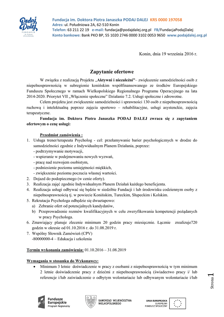 Zapytanie ofertowe - Fundacja Podaj Dalej