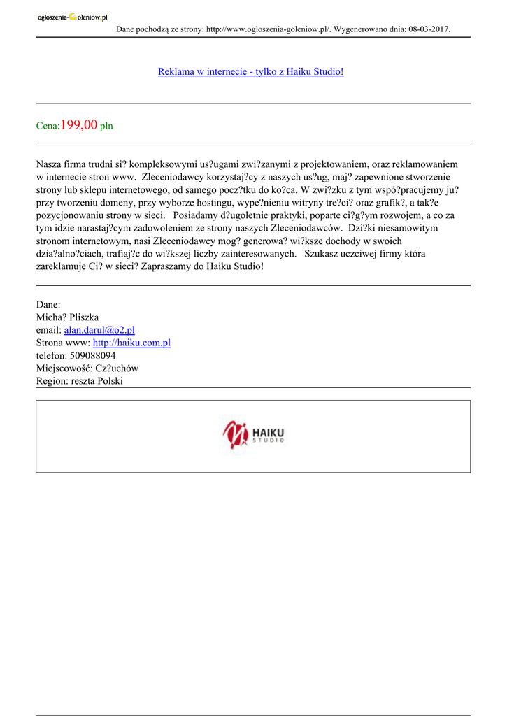 Reklama w internecie - tylko z Haiku Studio! - Ogloszenia