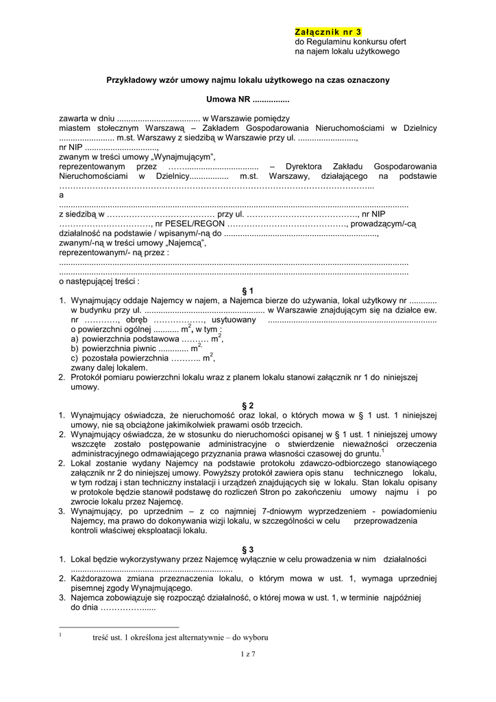 Zalacznik nr 3 - wzor umowy najmu lokalu