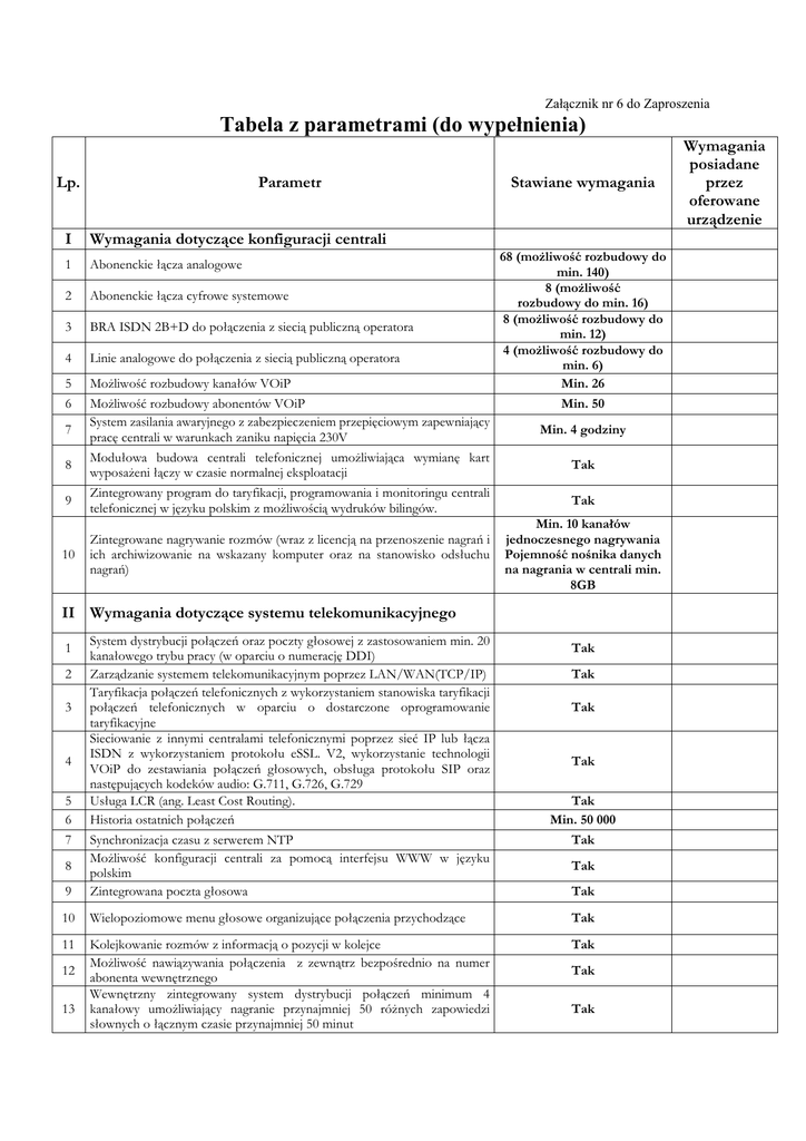 załącznik nr 6 - tabela z parametrami do wypełnienia