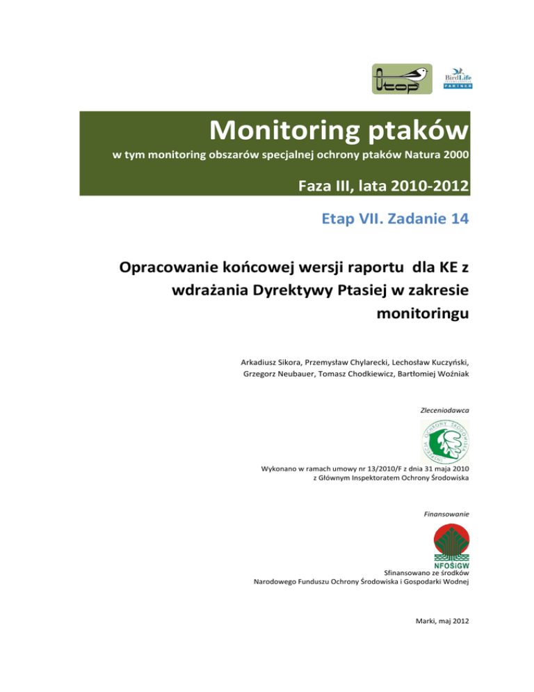 ptaków, w tym monitoring obszarów specjalnej ochrony ptaków Natura 2000 – faza III, lata