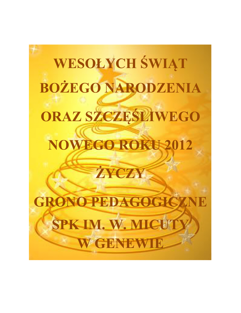 WESOŁYCH ŚWIĄT BOŻEGO NARODZENIA ORAZ SZCZĘŚLIWEGO NOWEGO ROKU 2012 ŻYCZY GRONO PEDAGOGICZNE SPK IM. W. MICUTY W GENEWIE