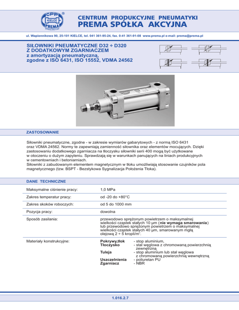 SIŁOWNIKI PNEUMATYCZNE D32 ÷ D320 Z DODATKOWYM