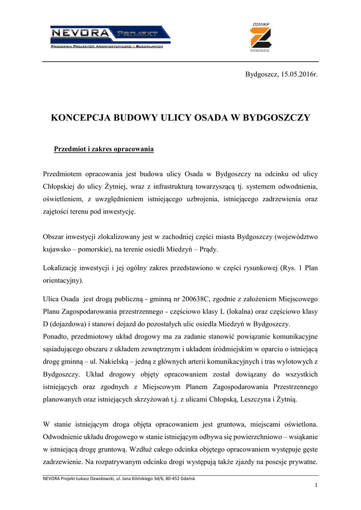 KONCEPCJA BUDOWY ULICY OSADA W BYDGOSZCZY