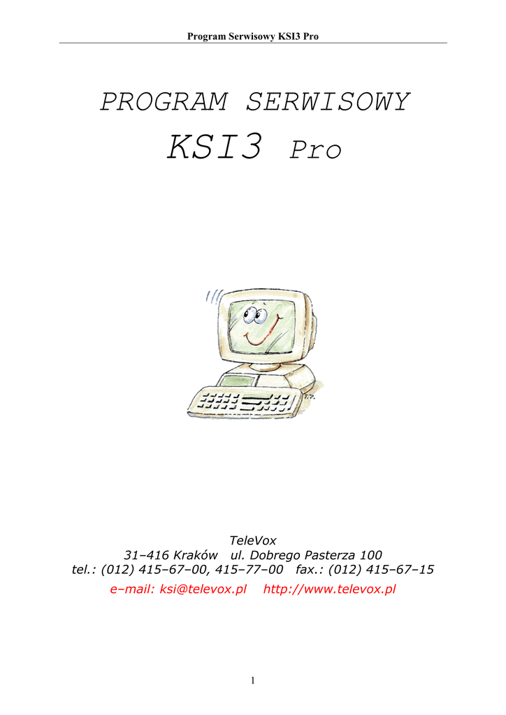 Program Serwisowy KSI3 Pro PROGRAM SERWISOWY KSI3 Pro TeleVox 31–416 Kraków ul. Dobrego Pasterza 100 tel.: (012) 415–67–00, 415–77–00 fax.: (012) 415–67–15 e–mail: [email protected] http://www.televox.pl 1 Spis treści Spis treści 1. Program serwisowy – informacje podstawowe............................................ 3 2. Uruchomienie programu ............................................................................... 5 3. Funkcje programu serwisowego................................................................... 6 3.1 Zmiana kartoteki z danymi ........................................................................ 6 3.2 Zaawansowane opcje programu serwisowego........................................... 6 3.3 Lista raportów ............................................................................................ 7 4. Archiwizacja danych .................................................................................... 8 4.1 Konfiguracja archiwizacji danych ............................................................. 8 4.2 Struktura archiwizowanych danych........................................................... 9 4.3 Odarchiwizowywanie danych.................................................................... 9 5. Usuwanie danych do podanej daty ............................................................. 10 6. Kasowanie transakcji .................................................................................. 11 7. Narzędzia serwisowe .................................................................................. 12 7.1 Uruchamianie narzędzi ............................................................................ 12 8. Makra .......................................................................................................... 13 8.1 Tworzenie makra ..................................................................................... 13 8.2 Kasowanie makra..................................................................................... 13 8.3 Uruchamianie makra................................................................................ 13 8.4 Gdzie szukać plików z zapisanymi makrami?......................................... 13 2 Program Serwisowy KSI3 Pro 1. Program serwisowy – informacje podstawowe Program ten powstał z myślą o usprawnieniu pracy i zapewnieniu bezpieczeństwa tak waŜnych czynności, jakimi są: • Codzienna kopia bezpieczeństwa; • Przywrócenie danych z kopii bezpieczeństwa w przypadku awarii systemu komputerowego; • Usuwanie starych/niepotrzebnych danych (transakcji/kart towarów) w dwóch wariantach: Usuwanie rozliczonych transakcji do zadanej daty z kasowaniem lub bez kasowanie nieuŜywanych kart towarów; Usuwanie wszystkich transakcji przy zostawieniu w bazie danych statycznych z zerowaniem bądź bez zerowania stanów magazynowych; • Konserwacja danych programu KSI3 Pro; • Programowanie i sprawdzanie zawartości klucza elektronicznego. Program Serwisowy – Menu Główne Zalety programu Serwis: • Łatwe i bezpieczne wykonywanie kopii bazy danych, co pozwala ustrzec się przed przypadkami, gdy zrobiona przez nas kopia nie zawiera interesujących danych, bądź została wykonana na uszkodzonym nośniku (np. dyskietka). Program umoŜliwia weryfikację zarchiwizowanych danych. Istnieje moŜliwość wykonania kilku kopii na ten sam dysk. • Pliki zawierające kopię bezpieczeństwa mają nazwy określające datę ich wykonania. • Kopię bezpieczeństwa moŜna wykonywać nawet kilkakrotnie tego samego dnia. • Umiejętności dotychczas zdobyte przy pracy z programem KSI3 Pro pozwalają na proste uruchamianie narzędzi słuŜących do testowania poprawiania danych (m.in. indeksowanie danych). Nie są wymagane zdolności poruszania się po drzewie katalogowym. 3 Program Serwisowy KSI3 Pro • • • Wygodny interfejs i intuicyjna obsługa zapewniają łatwość w obsłudze nawet niezaawansowanym uŜytkownikom. System definiowanych makr pozwala na uruchomienie automatycznie kilku narzędzi po kolei (takŜe kopii bezpieczeństwa) bez konieczności zatwierdzania kaŜdego z osobna. Sumaryczny wynik zostanie wyświetlony na zakończenie makra. Wykonanie makra moŜna takŜe wykonać automatycznie przy uruchamianiu komputera bądź po zamknięciu programu KSI3 Pro. Funkcja ta umoŜliwia bez ingerencji uŜytkownika np. codzienne wykonanie kopii bezpieczeństwa i sprawdzenie poprawności bazy/ baz danych. UWAGA! Program serwisowy w razie problemów z systemem komputerowym w znacznym stopniu ułatwia telefoniczną pomoc techniczną. Program Serwis-owy jest dostępny jako fakultatywny moduł do programu KSI3 Pro. 4 Program Serwisowy KSI3 Pro 2. Uruchomienie programu Aby uruchomić program naleŜy w katalogu KSI3 wybrać plik serwis.exe i uruchomić go. JeŜeli instalacja programu przebiega poprawnie na monitorze powinien pojawić się niebieski ekran będący głównym ekranem „Programu Serwisowego KSI3 Pro”. Program Serwisowy – wybór operatora 5 Program Serwisowy KSI3 Pro 3. Funkcje programu serwisowego Po uruchomieniu program sprawdza plik config.dat i wybiera z niego kartotekę z danymi, która została zaznaczona jako domyślna dla programu KSI3 Pro. Jeśli aktualnie jest ona zajęta (np. uruchomiony jest program KSI3 Pro) to w programie serwisowym nie zostanie wybrana Ŝadna kartoteka, a pasek z nazwą katalogu pozostanie pusty. Większość programów narzędziowych do prawidłowego działania wymaga jednak wybrania katalogu z bazą danych. Tak więc przed uruchomieniem Programu Serwisowego zaleca się zamknięcie KSI3 Pro i zwolnienie plików z danymi. 3.1 Zmiana kartoteki z danymi Aby uzyskać dostęp do spisu kartotek naleŜy nacisnąć klawisz <F10>. Program wyświetli wszystkie bazy, jakie udało mu się znaleźć w pliku konfiguracyjnym programu KSI3 Pro. Jeśli na liście nie znajduje się baza, którą jesteśmy zainteresowani to po wciśnięciu klawisza <TAB> moŜemy określ