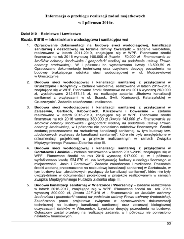 informacja z wykonania zadań majątkowych za i półrocze 2016