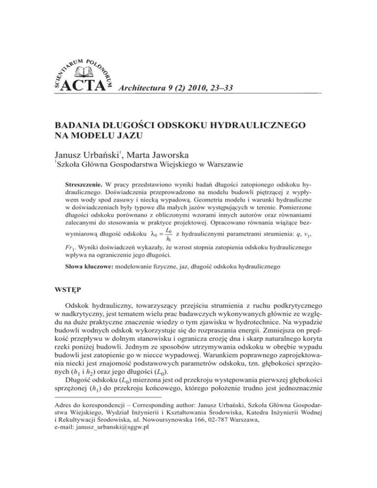 BADANIA DŁUGOŚCI ODSKOKU HYDRAULICZNEGO NA