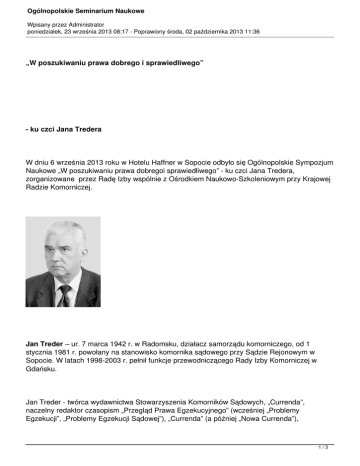 Naukowe „W poszukiwaniu prawa dobregoi sprawiedliwego” - ku czci Jana Tredera,