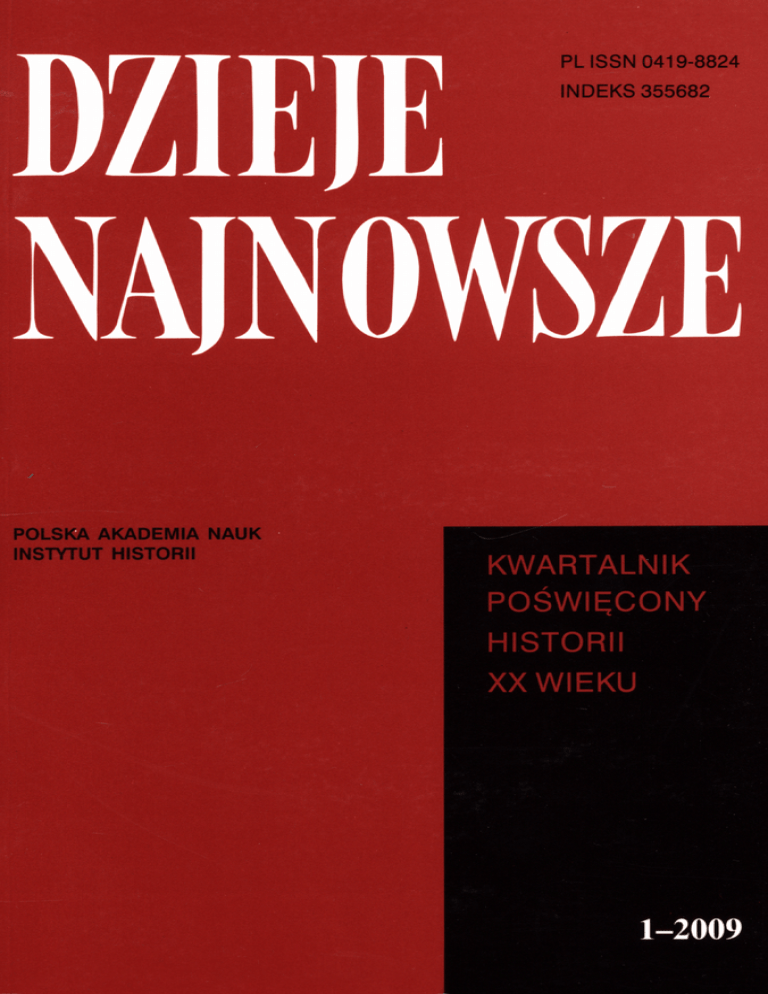 POLSKA AKADEMIA NAUK INSTYTUT HISTORII DZIEJE NAJNOWSZE RocznikXLI 2009 1 WARSZAWA2009 „Dzieje Najnowsze” Założone w 1969 r. przez Tadeusza Jędruszczaka, Czesława Madajczyka i Witolda Stankiewicza Wydanie publikacji dofinansowane przez Ministra Nauki i Szkolnictwa Wyższego (Umowa nr 565/DWB/P/2009) KOMITET REDAKCYJNY Krzysztof Kawalec, Tadeusz Kisielewski, [Stanisława Lewandowskal, Piotr Łossowski, Piotr Madajczyk, Wojciech Materski, Jan Molenda, Andrzej Nowak, Tadeusz Radzik, Wojciech Rojek, Tomasz Schramm, Rafał Stobiecki, Ryszard Sudziński, Włodzimierz Suleja, Jacek Tebinka, Zygmunt Zieliński, Elżbieta Znamierowska-Rakk, Janusz Żarnowski REDAKCJA Małgorzata Gmurczyk-Wrońska (sekretarz), Magdalena Hułas, Marek K. Kamiński, Andrzej Koiyn, Krzysztof Michałek, Tadeusz Wolsza (redaktor naczelny) TŁUMACZ Aleksandra Rodzińska-Chojnowska ADRES REDAKCJI Instytut Historii PAN 00-272 Warszawa, Rynek Starego Miasta 29/31, tel. 831-02-61 ISSN 0419-8824 © Instytut Historii PAN & Wydawnictwo DiG, 2009 Wydawca: Wydawnictwo DiG Sp.j. PL 01-524 Warszawa, al. Wojska Polskiego 4 tel./fax (+4822) 839-08-38 e-mail: [email protected] http://www.dig.pl Druk cyfrowy D Z IE JE NAJNOW SZE, R O C ZN IK XLI — 2009,1 PL ISSN 0419-8824 Spis treści STUDIA I A RTY K UŁY Hanna Marczewska-Zagdańska — Council on Foreign Relations oraz kwartalnik „Foreign A ffairs”ja ko forum dyskusyjne, doradcze i opiniotwórcze w amerykańskiej polityce zagranicznej od Woodrow Wilsona do Franklino D. Roosevelta ............................ 3 Adam Szymanowicz — Działalność wywiadu wojskowego II Rzeczypospolitej w Prusach Wschodnich (1 9 1 8 -1 9 3 9 ) .................................................................................................. 23 Janusz Czechowski — Wzloty i upadki w politycznych relacjach Polski i Finlandii w dwudziestoleciu międzywojennym .................................................................................. 49 Małgorzata Nossowska — Embarras de richesse czyli historia rujnującego spadku (próby stworzenia przez Rosę Bailly ośrodka polskiego w Lechâtelet k. D ijo n ) ................ 61 Marcin Adamiak — Projekt wysłania żołnierzy polskich internowanych na Litwie i Łotwie na front sow iecko -fiń ski ...................................................................................... 75 Rafał Gardocki — Amerykańska lekcja demokracji czasu wojny — wybory prezydenckie w 1944 r. ............................................................................................................................. 83 Kinga Grafa — Walka o „serca i umysły”. Znaczenie „dyplomacji kulturalnej”, jako narzędzia polityki zagranicznej USA w latach 1945-1961 ........................................ 95 Bartosz Wróblewski — Raport Glubba Paszy z 13 lipca 1946 r. — brytyjskie i transjordańskie spojrzenie na problem podziału Palestyny ...................... 111 Łukasz Bonczol — Indonezja 1965 — kryzys, zamach stanu i zwycięstwo generała S u h a r to .............................................................................................................. 123 A U TO R EFERA TY Adriana Dawid — Kośni z Chróścic. Dzieje rodu na tle przemian społeczno-politycznych Śląska w X IX i X X w. ...................................................................................................... 141 Marcin Urynowicz — Adam Czerniaków 1880-1942. Życie i działalność ...................... 147 M A TERIA ŁY Uwagi i spostrzeżenia mjr. Feliksa Ankersteina z 1940 r. dotyczące przygotowań i działań dywersyjnych Ekspozytury nr 2 Oddziału II Sztabu Głównego WP — Piotr Kołakowski........................................................................................................ 151 260 Spis treści RECENZJE Petr Serafimowič Kabytow, P A. Stolypin:poslednij reformator Rossijskoj imperii — Artur Markowski.................................................................................................. Richard Pipes, Komunizm — Ilona Zaleska .................................................................. Olgierd Grott, Faszyści i narodowi socjaliści w Polsce — Rafał Ł ętocha........................ Jakub Wojtkowiak, Polowanie na „dalniewostoczników”. Represje wobec korpusu oficerskiego dalekowschodniego zgrupowania radzieckich sił zbrojnych w latach 1936-1939 — Wojciech Materski................................................................ Szczepan Siekierka, Henryk Komański, Krzysztof Bulzacki, Ludobójstwo dokonane przez nacjonalistów ukraińskich na Polakach w województwie stanisławowskim 1939-1946 — Bogumił Grott ................................................................................... Yale Richmond, Practicing Public Diplomacy. A Cold War Odyssey — Włodzimierz B atog.............................................................................................. Narodowe i europejskie aspekty polityki historycznej, pod red. B. Korzeniewskiego — Rafał Stobiecki .................................................................................................... Ryszard Herczyński Spętana nauka. Opozycja intelektualna w Polsce 1945-1970 — Tadeusz Paweł Rutkowski.................................................................................... Witold Chmielewski, Edukacja nauczycieli po II wojnie światowej — Anita Młynarczyk-Tomczyk................................................................................. ŻYCIE NAUKOWE Historia XX wieku na łamach „Dziejów Najnowszych” w latach 2006-2008 — Ryszard Sudziński................................................................................................ Omówienie zawartości „Dziejów Najnowszych ” od numeru 1/2006 do 3/2008 — Jacek Tebinka ..................................................................................................... 66. Zjazd Polskiego Instytutu Naukowego w Ameryce (Filadelfia 13-