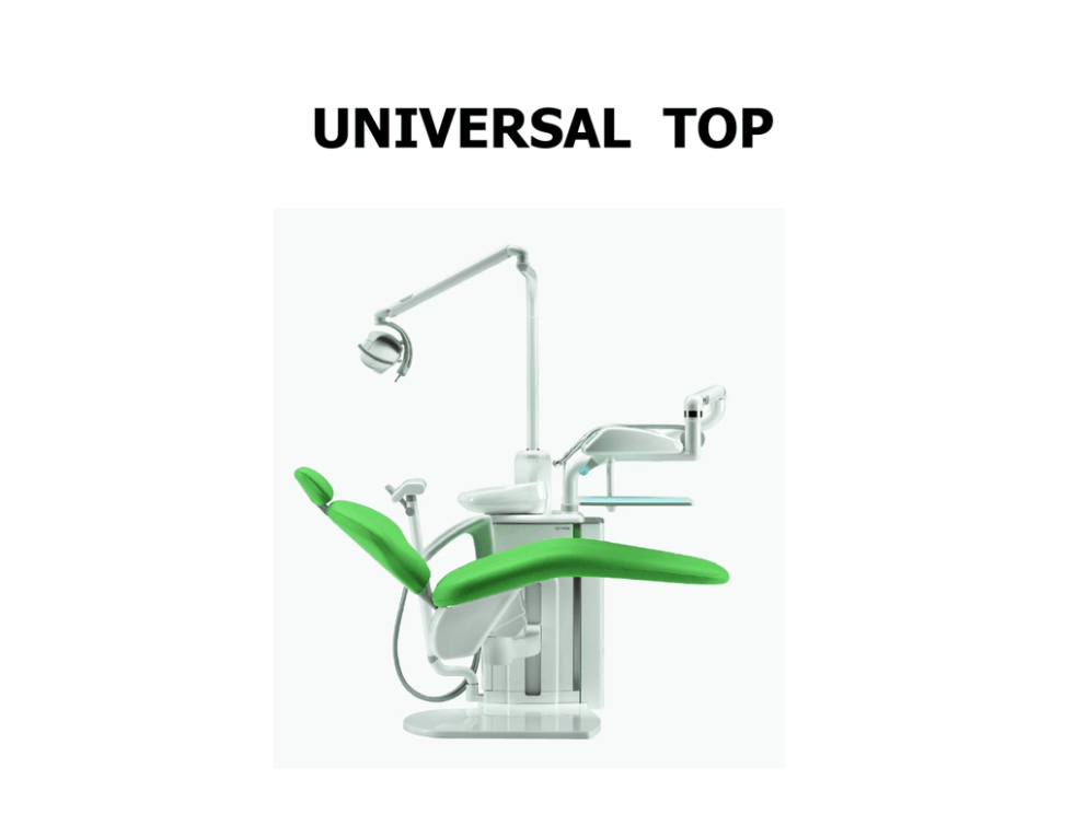 UNIVERSAL TOP UNIVERSAL TOP UNIVERSAL TOP jest najnowszym, kolumnowym unitem stomatologicznym włoskiej firmy OMS S.p.A. Firma OMS – w latach sześćdziesiątych - jako pierwsza w Europie stworzyła unit kolumnowy, który stał się inspiracją dla producentów na całym świecie Tak jak wszystkie unity OMS jest objęty 36 miesięczną gwarancją Jest bardzo funkcjonalny i ergonomiczny Jego konstrukcja i zastosowane materiały gwarantują możliwość zachowania maksymalnej higieny Małe gabaryty umożliwiają możliwość takiego ustawienia unitu, które zapewni optymalne naturalne oświetlenie stanowiska pracy oraz wygodną komunikację w gabinecie, co w warunkach małych gabinetów jest bardzo istotne. UNIVERSAL TOP jest unitem elektrycznym ( powietrze z kompresora napędza turbinę, zasila dmuchawkę oraz jest wykorzystywane do chłodzenia mikrosilników i tworzenia spreju ). W unicie UNIVERSAL TOP zastosowano dwustopniowy system filtracji wody z zanieczyszczeń mechanicznych, który zapewnia bezpieczeństwo zaworów i końcówek oraz skutecznie eliminuje zanieczyszczenia o wielkości powyżej 2 mikronów. Stolik lekarza Stolik z końcówkami jest umocowany na pantograficznym ramieniu o bardzo szerokim zasięgu ruchu we wszystkich kierunkach i jest znakomicie wyważony Umożliwia pracę od tyłu i z boku pacjenta w warunkach pełnego komfortu pod względem ergonomii Wszystkie narzędzia mają sprej o indywidualnie regulowanej intensywności, a turbiny i mikrosilniki przedmuch tzw. "chip blower". Stolik lekarza może być wyposażony od trzech do pięciu rękawów roboczych Zawieszenie rękawów UNIVERSAL TOP charakteryzuje się najlepszymi rozwiązaniami ergonomicznymi, w których rękawy z końcówkami są umieszczone na pantografach • Ten system mocowania rękawów umożliwia posługiwanie się narzędziami - ich chwytanie i odkładanie - zgodne z zasadami ergonomii • Właściwy dobór środków obrotu i wymiarów pantografów zmniejsza do minimum ich wychylenie pionowe i wyklucza ryzyko zderzania się z lampą. • Przy tak zaprojektowanym stoliku, biorąc pod uwagę konstrukcję z górnym zawieszeniem rękawów, długość samych rękawów ( bez pantografu ) umożliwiająca swobodną manipulację końcówkami podczas zabiegu wynosi 80 cm nie wliczając długości samych końcówek . Wyeliminowanie blokad rękawów • Dzięki doskonałemu wyważeniu wysięgników niezauważalnie mały jest naciąg rękawów. • Kiedy końcówka znajduje się bardzo blisko pola zabiegowego specjalna konstrukcja wysięgnika niemal całkowicie eliminuje naciąg rękawa. Nie ma potrzeby wykonywania dodatkowych ruchów końcowki w celu jej blokowania lub uwalniania blokady. • Gdy końcówka jest odkładana i znajduje się blisko stolika, naciąg rękawa staje się silniejszy i końcówka szybko wraca na swoje miejsce. • Minimalna wysokość pantografów połączona z maksymalną długością rękawów, dużym zakresem ruchu pionowego stolika i szerokim zakresem wychyleń w płaszczyźnie poziomej umożliwia praktycznie dowolne ustawienie stolika zapewniając zachowanie wszelkich zasad ergonomii podczas pracy lekarza w pozycji pomiędzy godziną 9-tą a 12-tą. Panel sterowania na stoliku lekarza 1. Włączanie / wyłączanie lampy głównej unitu 2. Napełnianie kubka ciepłą wodą 3. Napełnianie kubka zimną wodą 4. Spłukiwani spluwaczki 5. Wybór trybu pracy mikrosilnika i skalera ( stała, progresywna ) 6. Włączanie / wyłączanie światła w końcówkach 7. Włączanie / wyłączanie spreju w mikrosilniku i skalerze 8. Wolny przycisk do podłączenie np.. „wezwania asysty” 9. Ustawianie czasu lewych obrotów mikrosilnika bezszczotkowego 10. Podnoszenie fotela i całości unitu do góry 11. Podnoszenie oparcia do góry 12. Wywoływanie pozycji „0” 13. Opuszanie fotela i całości unitu do dołu 14. Opuszczanie oparcia do dołu 15. 1.naciśnięcie – wywołanie pozycji płukania 2.naciśnięcie – powrót do ostatniej pozycji pracy 16. Przycisk do zaprogramowania: 1.programu mikrosilnika 1.programu położenia fotela wyboru trybu pracy skalera – „skaling” Panel sterowania na stoliku lekarza – c.d. 17. Przycisk do zaprogramowania: 2. programu mikrosilnika 2. programu położenia fotela wyboru trybu pracy skalera – „perio” 18. Przycisk do zaprogramowania: 3. programu mikrosilnika 3. programu położenia fotela wyboru trybu pracy skalera – „endo” 19. 20. 21. 22. 23. 24. 25. 26. 27. Przycisk zwiększania parametrów podczas programowania Przycisk zmniejszania parametrów podczas programowania Przycisk zatwierdzania wprowadzonych parametrów podczas programowania Praca mikrosilnika bezszczotkowego w systemie „Standard” Praca mikrosilnika bezszczotkowego w systemie „Auto Reverse” Praca mikrosilnika bezszczotkowego w systemie „Auto Forvard” Wprowadzanie przełożenia kątnicy w celu odczytu rzeczywistej prędkości obrotowej wiertła na wyświetlaczu Wprowadzanie granicznego momentu obrotowego po przekroczeniu którego następuje zmiana kierunku prędkości obrotowej mikrosilnika Wyświetlacz Diodowa lampa główna MAIA Mocowanie na ramieniu pantograficznym o szerokim zasięgu ruchu Możliwość pozycjonowania głowicy w 2 płaszczyznach Regulacja natężenia światła od 3.000 do 35.000 luksów Białe światło - temperatura barwowa światła 5.000 K Niski pobór mocy – 2 diody ( 2 x 10 W ) Długa żywotność – 50.000 h ( 300 dni x 14 h = 4.200 h/rok = ok. 12 lat ) Źródło światła nie powodujące nagrzewania lampy – wyeliminowanie wentylatorków w głowicy lampy Zmniejszenie o 80% ubocznego polimeryzowania wypełnień Diodowa lampa główna ALYA Mocowanie na ramieniu pantograficznym o szerokim zasięgu ruchu Możliwość pozycjonowania głowicy w 3 płaszczyznach Regulacja natężenia światła od 3.000 do 60.000 luksów Szybkie przejście pomiędzy max. i min. natężeniem światła Białe światło - temperatura barwowa światła 5.00