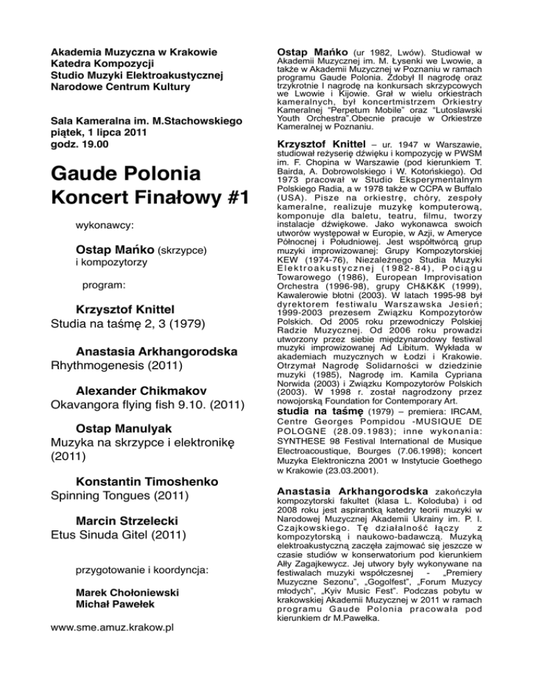krakowskiej Akademii Muzycznej w 2011 w ramach