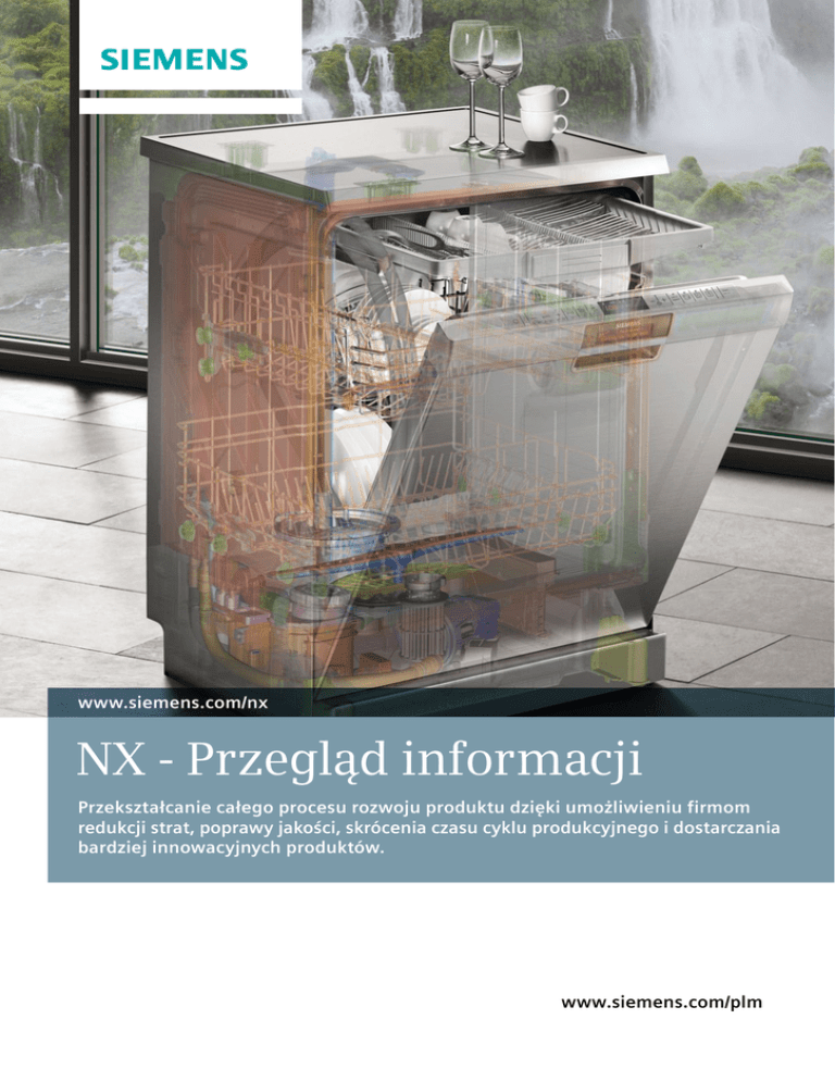 www.siemens.com/nx NX - Przegląd informacji Przekształcanie całego procesu rozwoju produktu dzięki umożliwieniu firmom redukcji strat, poprawy jakości, skrócenia czasu cyklu produkcyjnego i dostarczania bardziej innowacyjnych produktów. www.siemens.com/plm Przedstawiamy NX Współczesne wyzwania związane z rozwojem produktu: Bardziej niż kiedykolwiek wcześniej, przedsiębiorstwa produkcyjne są obecnie motywowane do tworzenia innowacyjnych produktów i jak najszybszego ich dostarczania na rynek, przy jednoczesnym dążeniu do spełnienia wszystkich wymagań klientów, oczekujących wysokiego poziomu jakości. Ale wykonanie czegoś “lepiej, taniej i szybciej” na bardzo konkurencyjnym, światowym rynku jest łatwiejsze do powiedzenia niż do zrealizowania. Problemy, z jakimi można się spotkać w procesie rozwoju produktu, należą do najbardziej zniechęcających, współczesnych wyzwań. Na pierwszy rzut oka szybkość, koszty, jakość oraz wyobrażenia klienta są zagadnieniami, które wydają się być ze sobą w sprzeczności. Konwencjonalne technologie często odpowiadają tylko na jeden lub dwa z tych celów, a tylko kilka rozwiązań jest zaprojektowanych tak, aby objąć wszystkie cztery jednocześnie. Ten dylemat wymaga radykalnego przemyślenia tradycyjnego modelu działania, stosowanego podczas rozwoju produktu. Współczesne wyzwania wymagają od firm kontrolowania wszystkich etapów rozwoju produktu, a następnie ulepszania każdego z nich oddzielnie - jak również przekształcania procesu rozwoju produktu jako całości. Proces rozwoju produktu musi panować nad swoją złożonością. Wymaga on udziału wielu różnych dyscyplin, które tradycyjnie były geograficznie, organizacyjnie i technologicznie od siebie odizolowane. Bariery te hamują wspólne działania zespołów marketingowych, projektowych, inżynieryjnych, analitycznych i produkcyjnych, pracujących nad rozwojem produktu od projektu aż do jego ukończenia. 2 2 Te interdyscyplinarne zespoły muszą rozumieć zmieniające się wymagania dotyczące produktu, współdzielić swoje najlepsze pomysły, zachowywać intencje projektowe, zarządzać zmianami, oznajmiać swoje uwagi oraz monitorować aktualny status poprzez systematyczne i powtarzalne procesy, które odzwierciedlają iteracyjną i rozproszoną naturę współczesnego łańcucha wartości rozwoju produktu. Równie ważną kwestią jest fakt, że od współczesnego procesu rozwoju produktu oczekuje się kompresji czasów jego różnorodnych cykli poprzez minimalizację czasów ich realizacji oraz eliminację zadań nie przynoszących wymiernych korzyści - przy jednoczesnej maksymalizacji ponownego wykorzystania wiedzy i aktywnemu zapobieganiu problemom, zanim zamienią się one w kosztowne błędy. Dla sprostania tym wyzwaniom firma Siemens PLM Software wprowadziła NX – pakiet rozwiązań wspomagających cyfrowy rozwój produktu. Pakiet rozwiązań NX umożliwia transformację całego procesu rozwoju produktu - jak również zwiększenie wydajności poszczególnych etapów, wchodzących w skład tego procesu. NX dostarcza najlepsze w swojej klasie funkcjonalności CAD, CAM, CAE i PDM, wspomagające wszelkie działania związane z rozwojem produktu. Pakiet NX dostarcza niezwykle szeroki zakres funkcjonalności, a w tym: Synchronous technology, która umożliwia łatwe wykorzystanie w tym samym środowisku najbardziej produktywnych metod modelowania - w tym bezpośredniego modelowania bryłowego i powierzchniowego, jak również modelowania parametrycznego i pozbawionego historii. Automatyzacja oparta na wiedzy, która pozwala wykorzystywać wiedzę o produkcie i procesie, zgromadzoną w przedsiębiorstwie na podstawie własnych doświadczeń firmy, jak również pochodzącą z najlepszych praktyk przemysłowych. Innowacyjność procesu, która daje możliwość uproszczenia i zintegrowania codziennych zadań realizowanych przez zespoły zajmujące się planowaniem, projektowaniem koncepcyjnym, konstruowaniem, symulacjami oraz wytwarzaniem. Symulacja całego cyklu życia produktu, która pozwala upraszczać procesy symulacji, walidacji i optymalizacji oraz wcześnie i często korzystać z nich w procesie rozwoju produktu. Raportowanie w środowisku graficznym i analizy, które pozwalają wykorzystać dane produktu do podejmowania lepszych, opartych na wiedzy decyzji. NX jest wspierany przez dostarczane przez Siemens PLM Software rozwiązania Global Innovation Networks, które umożliwiają firmom podejmowanie ujednoliconych, opartych na informacjach, decyzji na każdym etapie cyklu życia produktu. Krytyczne inicjatywy biznesowe wspierane przez rozwiązania NX Rozwój i wprowadzanie na rynek nowych produktów – Zwiększ innowacyjność poprzez wykorzystanie możliwości globalnej współpracy pomiędzy wszystkimi uczestnikami i procesami występującymi w całym cyklu życia produktu Synchronizacja łańcucha wartości – Wyróżnij się globalnie poprzez optymalizację wymiany pomysłów i informacji pomiędzy wszystkimi uczestnikami łańcucha wartości Zarządzanie danymi przedsiębiorstwa – Zwiększ konkurencyjność poprzez zapewnienie bezpiecznego dostępu do bazy wiedzy przedsiębiorstwa o produkcie i procesie Ujednolicenie i powtórne użycie – Wykorzystuj ponownie sprawdzone części, wyposażenie i procesy dla zwiększenia opłacalności i wdrażania najlepszych praktyk Zarządzanie wiedzą i własnością intelektualną – Gromadź wiedzę i doświadczenie uczestników cyklu życia produktu dla ciągłego zwiększania innowacyjności Zgodność z przepisami – Osiągnij zgodność z przepisami poprzez integrację wymagań rządowych oraz dotyczących bezpieczeństwa i środowiska Wydajność produkcji – Zintegruj projektowanie produktu i procesu z najlepszymi praktykami produkcyjnymi dla poprawy jakości i funkcjonowania produkcji Inżynieria systemów i mechatronika – Zintegruj podsystemy, relacje i komponenty 