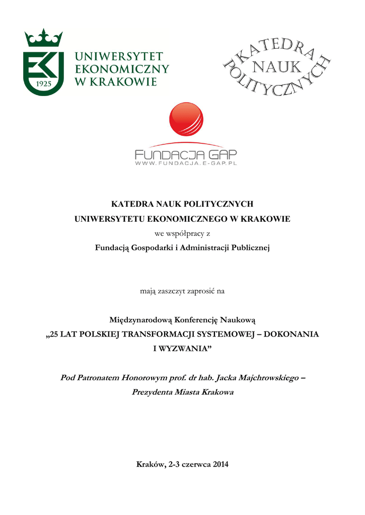 Szczegółowy opis konferencji - Katedra Nauk Politycznych UEK