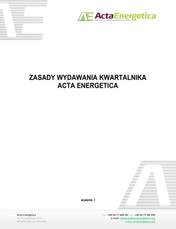 ZASADY WYDAWANIA KWARTALNIKA ACTA ENERGETICA
