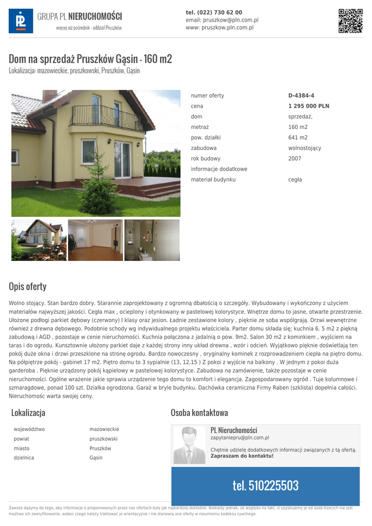 Dom na sprzedaż Pruszków Gąsin 160m2 - oferta D-4384-4