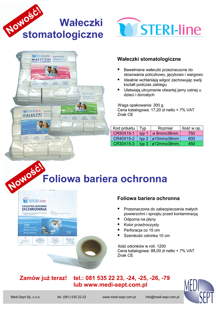 Ulotka Wałeczki stomatologiczne i bariera - Medi-Sept