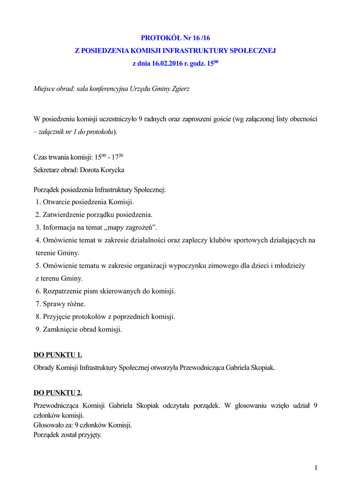 PROTOKÓŁ Nr 16 /16 Z POSIEDZENIA KOMISJI