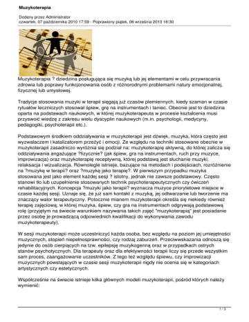Muzykoterapia ? dziedzina posługująca się muzyką lub jej