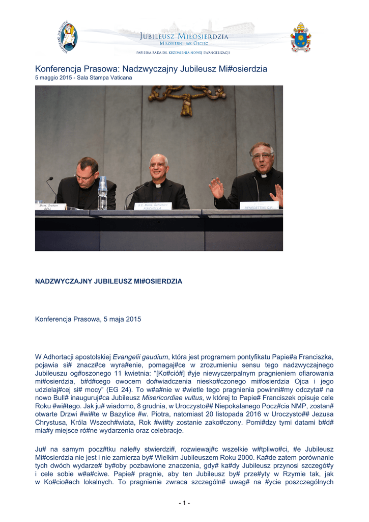 Konferencja Prasowa: Nadzwyczajny Jubileusz Mi#osierdzia