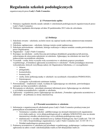 regulamin szkoleń - Szkolenia Podologiczne
