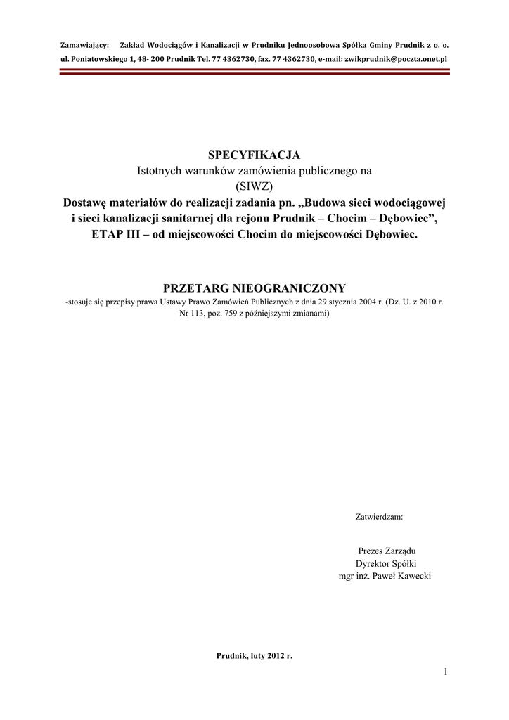 2. SIWZ - Zakład Wodociągów i Kanalizacji w Prudniku